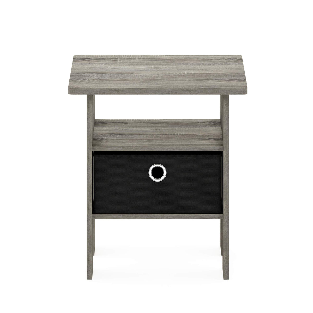 Furinno Andrey End Table / Side Table / Night Stand / Bedside Table With Bin Drawer, French Oak Grey/Black