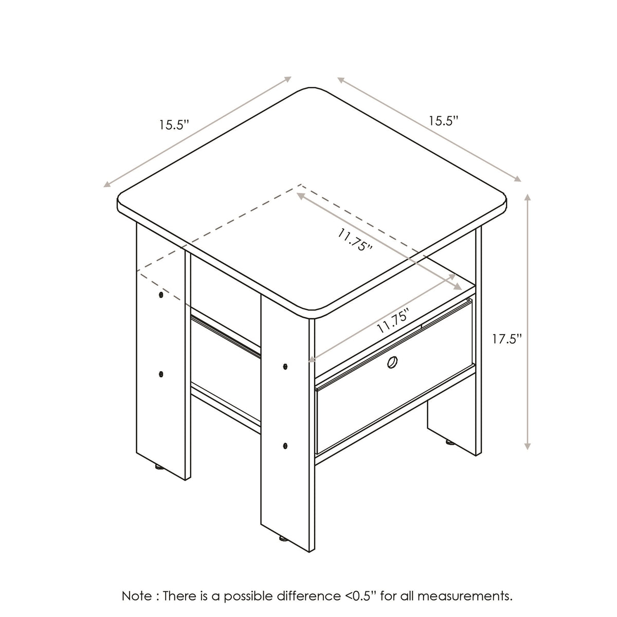 Create the prefect living room space with this FURINNO end table with bin. This end table will sit perfectly next to your chair or sofa and both beautiful and functional. Featuring one fabric drawer is perfect for keeping DVDs and remotes corralled, while an open shelf makes a marvelous spot to put a lush potted succulent on display. Rounded edge design prevents potential injuries. This storage end table is easy assembly with step by step instruction. Care instructions: wipe clean with clean damped cloth. Avoid using harsh chemicals. Pictures are for illustration purpose. All decor items are not included in this offer.