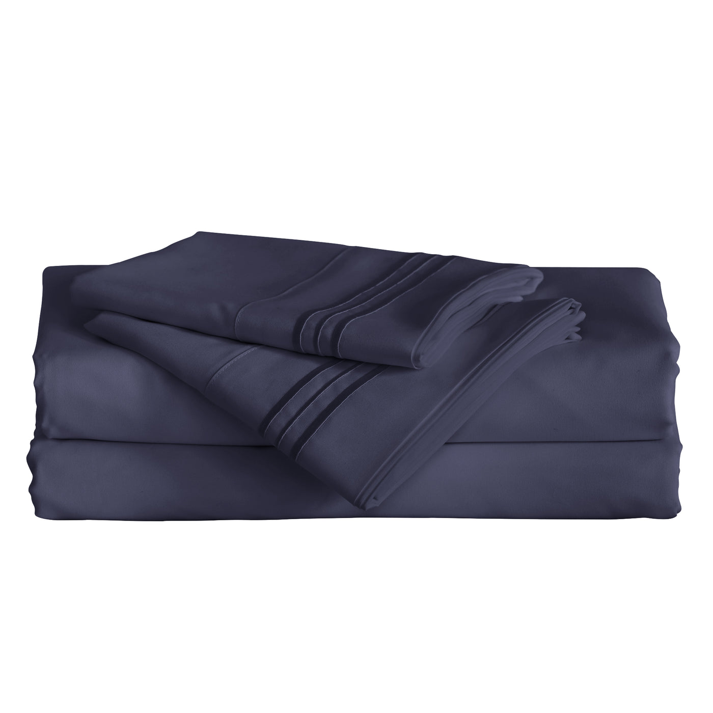 Furinno Angeland Vienne 3-Piece (3) Microfiber Bed Sheet And Pillowcase Set, Twin X-Large, Navy Blue