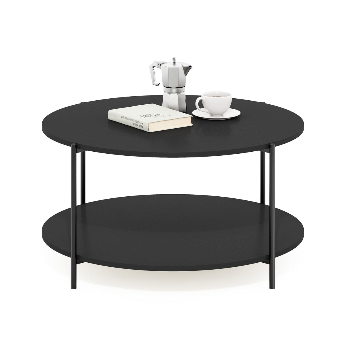 Furinno Besi 2-Tier Modern Round Coffee Table Table with Sturdy Metal Legs, Americano/Black