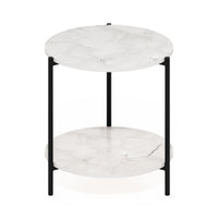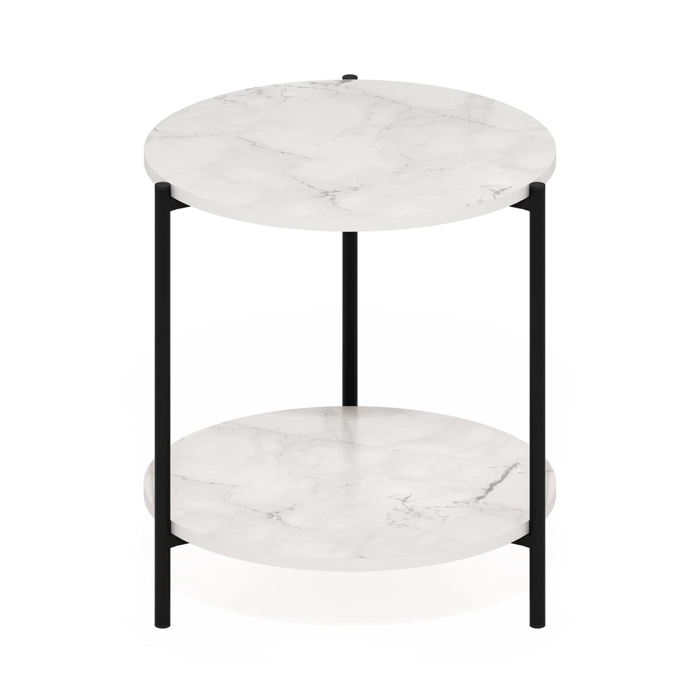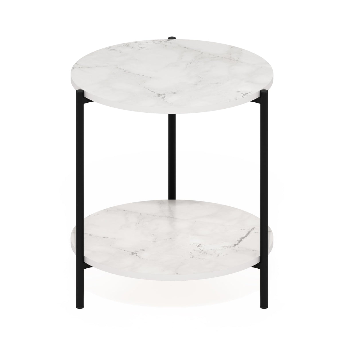 Furinno Besi 2-Tier Modern Round Side End Table With Sturdy Metal Legs, 15.55 (W) X 10.58 (H) X 5.46 (D) Inches, Marble White