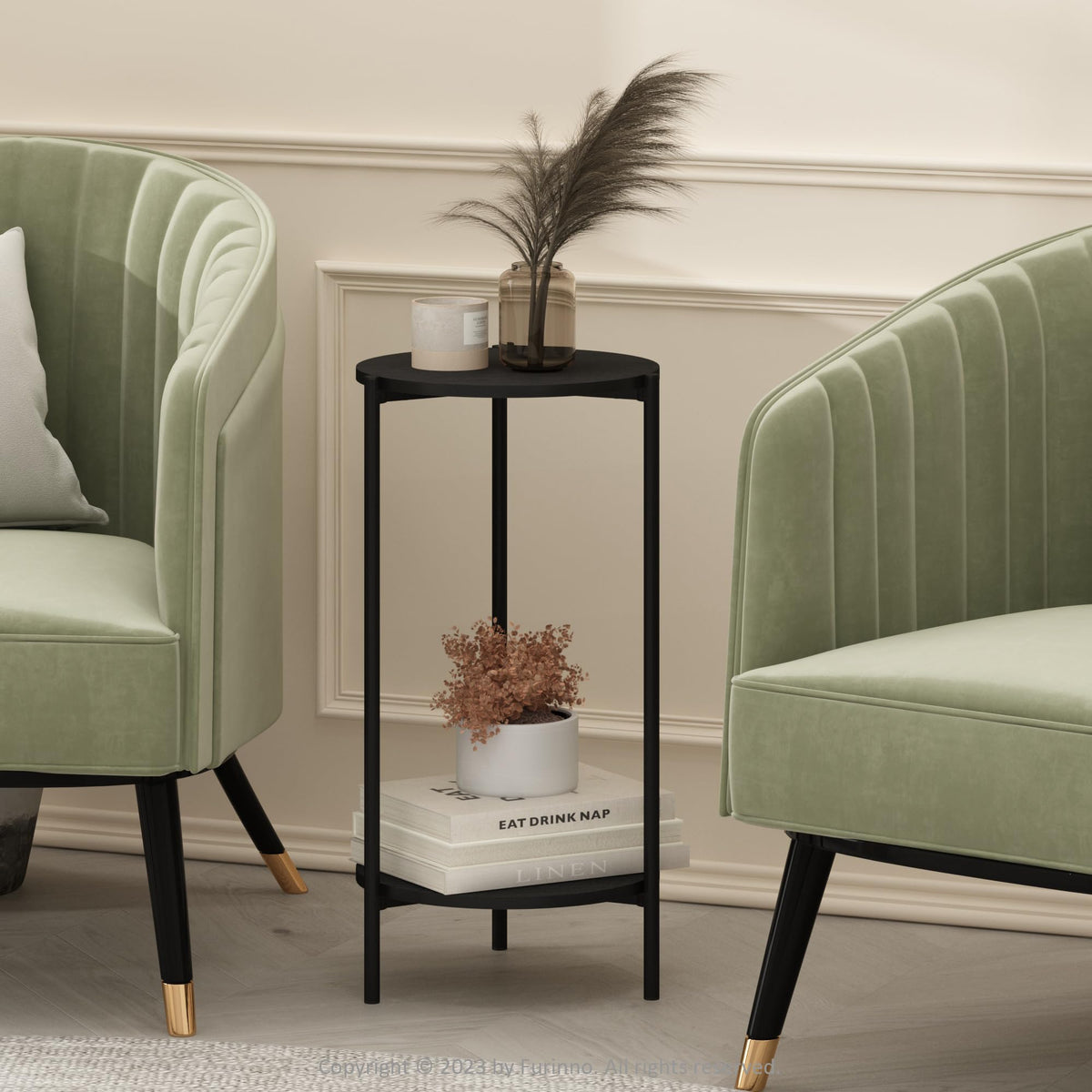 Furinno Besi 2-Tier Modern Tall Round Side End Table With Sturdy Metal Legs, 11.57 (W) X 8.16 (H) X 4.36 (D) Inches, Americano