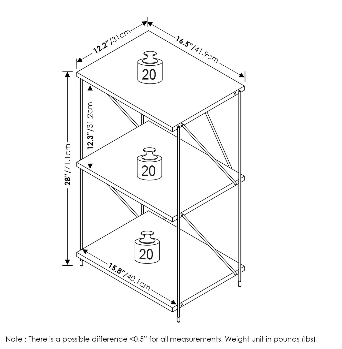 Furinno Besi 3-Tier Industrial Multipurpose Shelf Display Rack with Metal Frame, Finn Oak