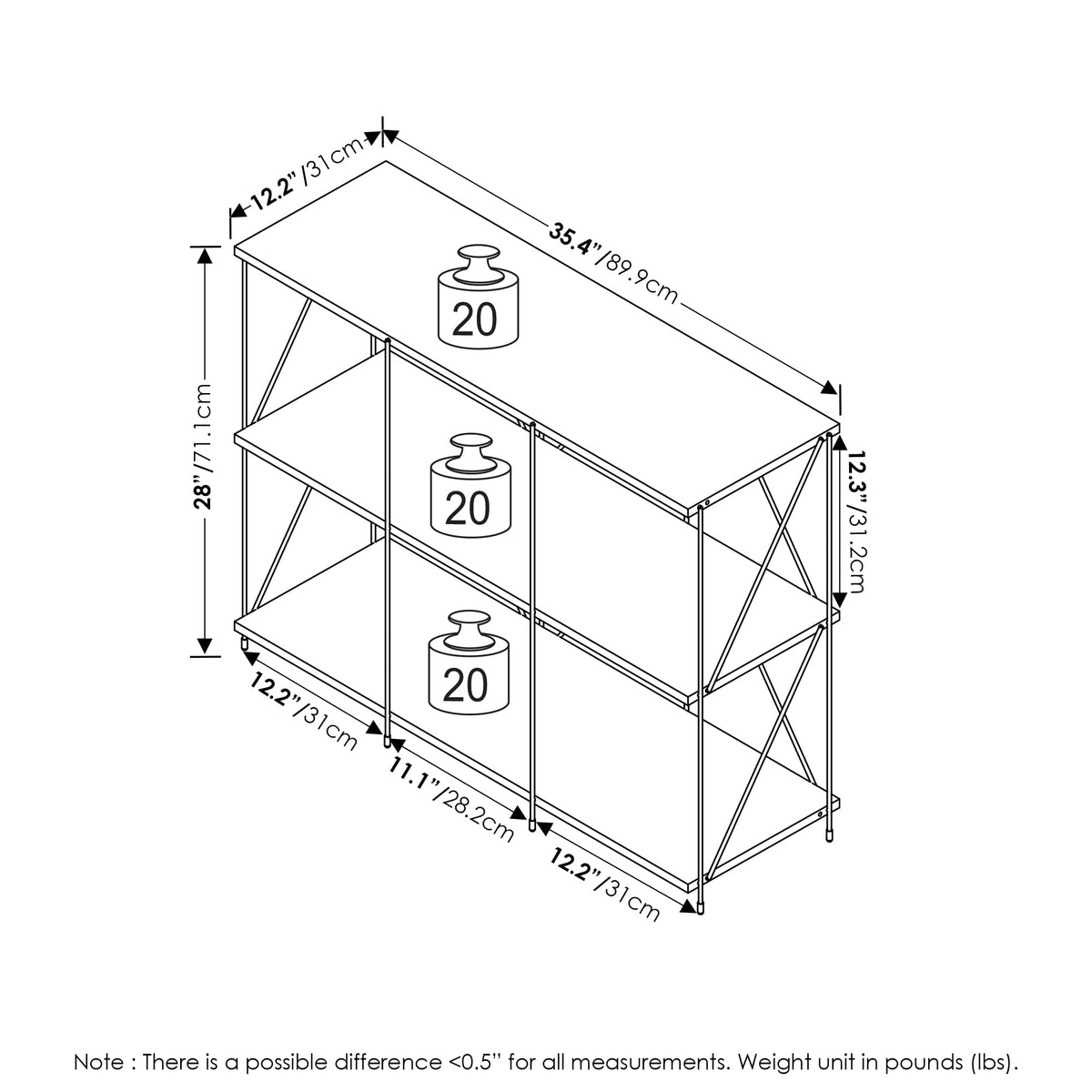 Furinno Besi Industrial Multipurpose Shelf Display Rack is the perfect addition to your home to showcase an on-trend style and satisfy your needs. The industrial-style shelf is designed with a minimalist feel that can easily blend in any room setting and showcase your collectibles, favorite books, succulents, family photos, and more. This attractive shelf comes with multiple color options and fully utilized the vertical space in your home. The shelf is made of durable CARB Grade composite wood and metal frame to solidify the shelf. Each shelf can hold up to 20 lbs. Assembly is easy with clear step-by-step assembly instructions and a hardware pack provided. Care instructions: wipe clean with a clean damped cloth. Avoid using harsh chemicals. Pictures are for illustration purposes. All decor items are not included in this offer.