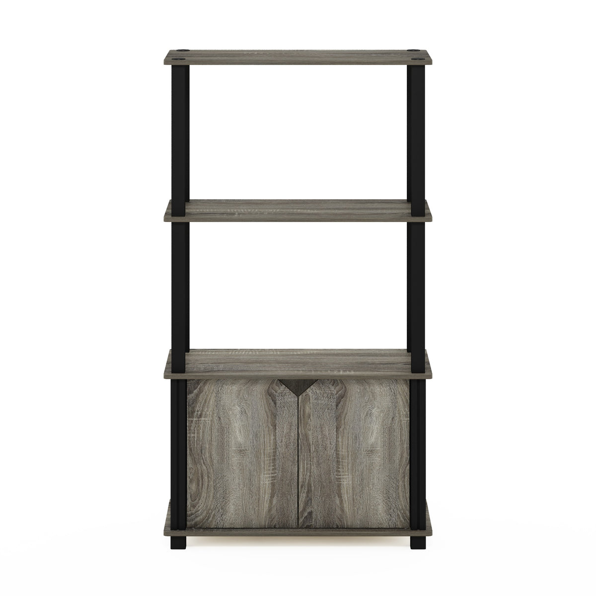 Furinno Brahms 4-Tier Multipurpose Bookcase/Bookshelf/Display Shelf/Display Rack with Door, French Oak Grey/Black