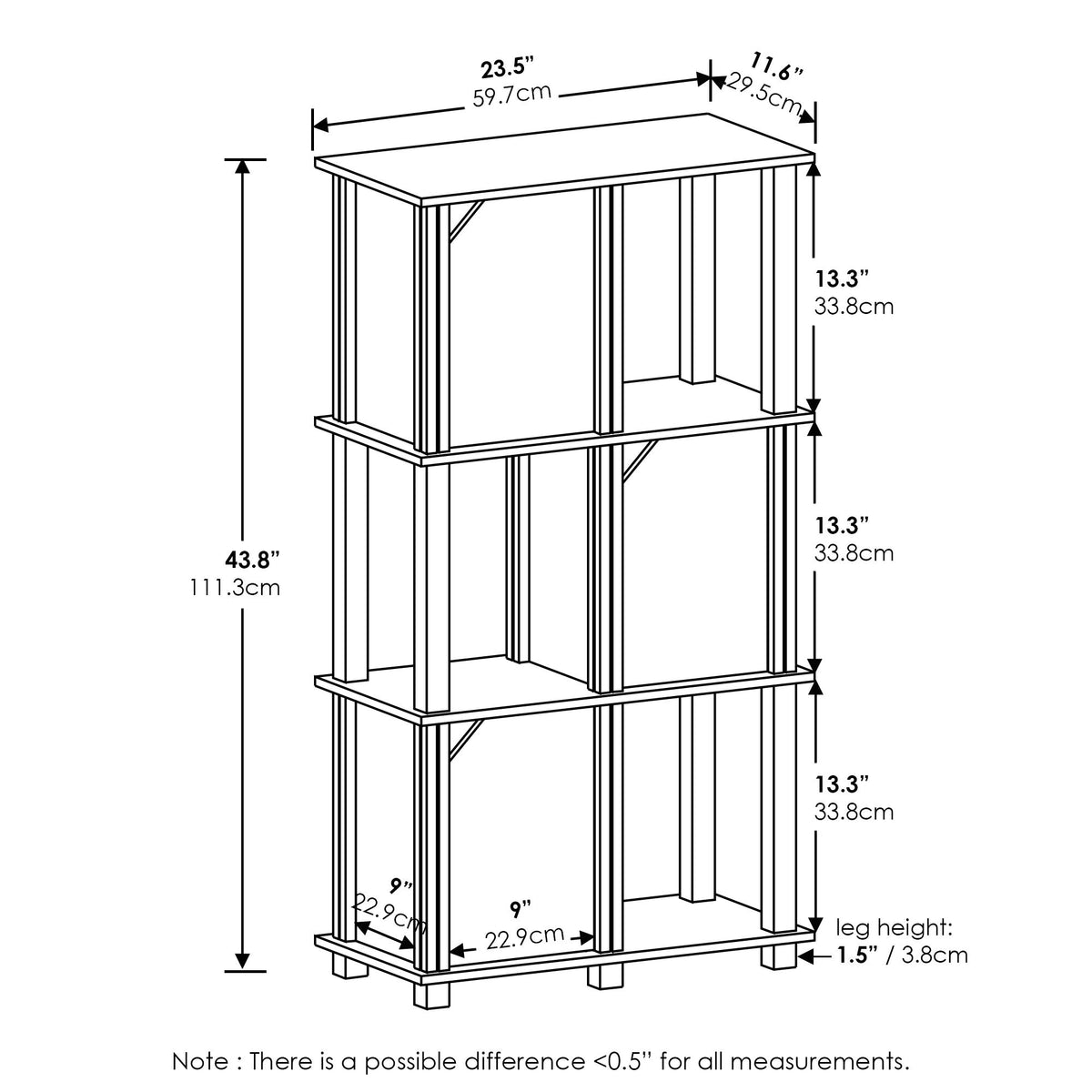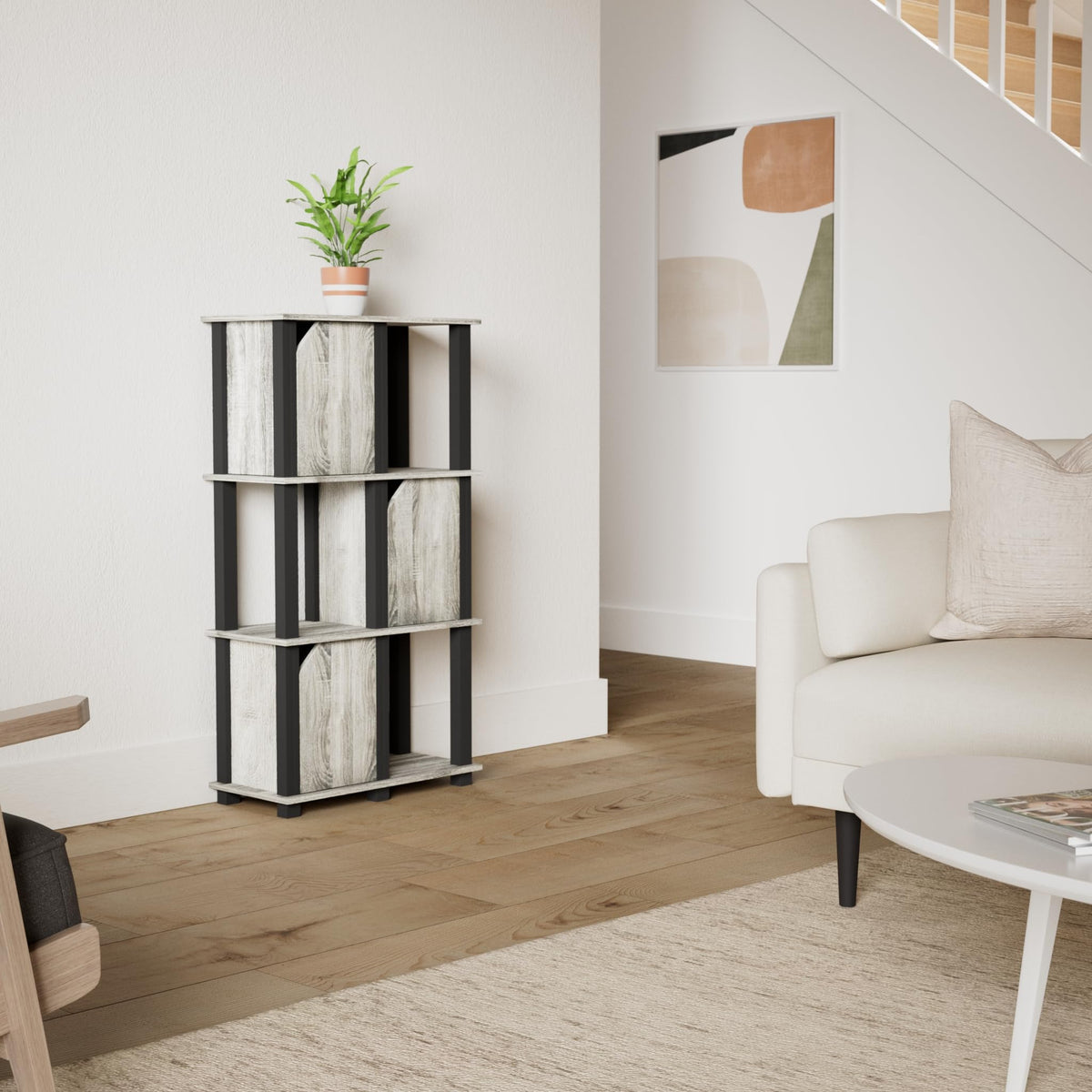Furinno Brahms Storage Shelf, 4-Tier, French Oak Grey/Black