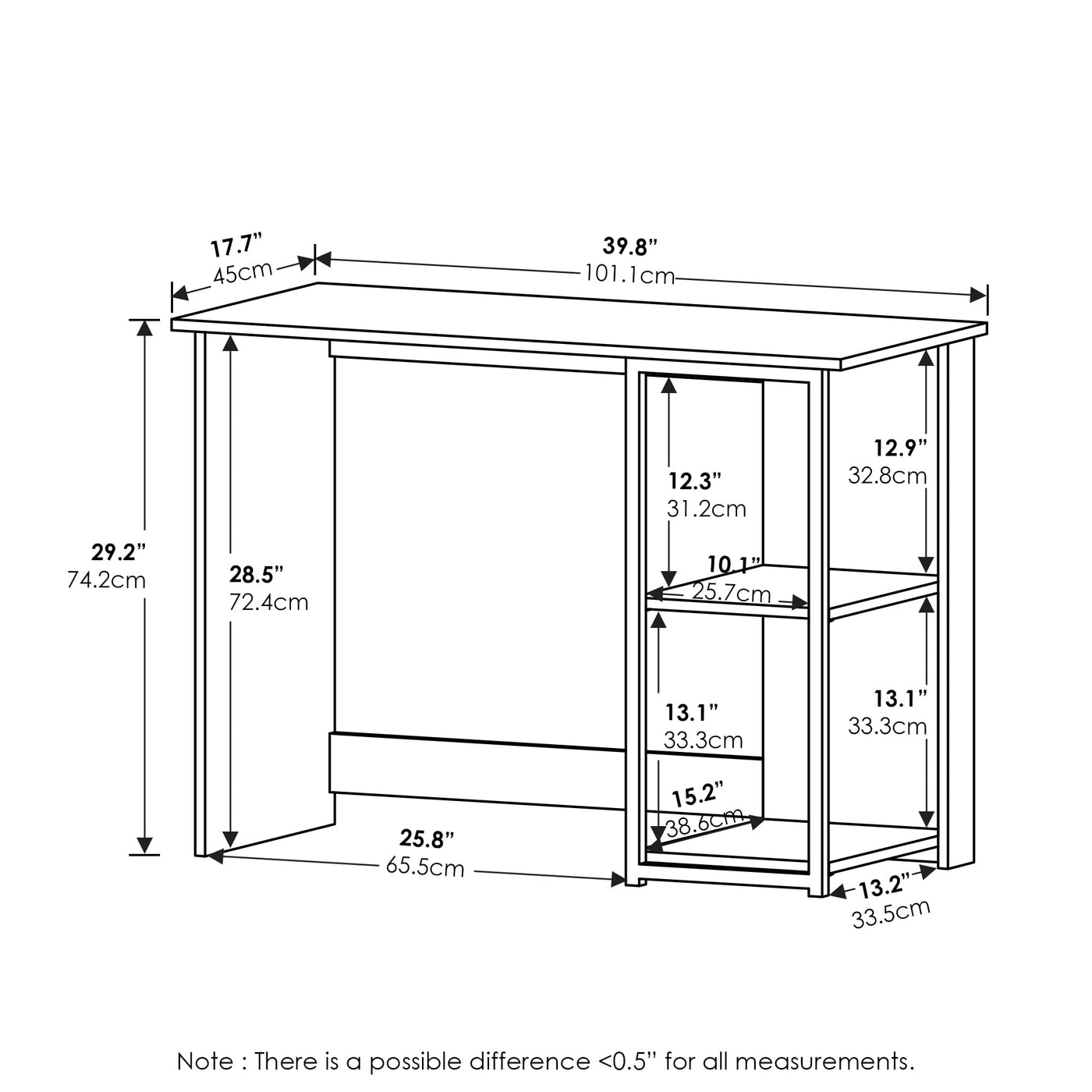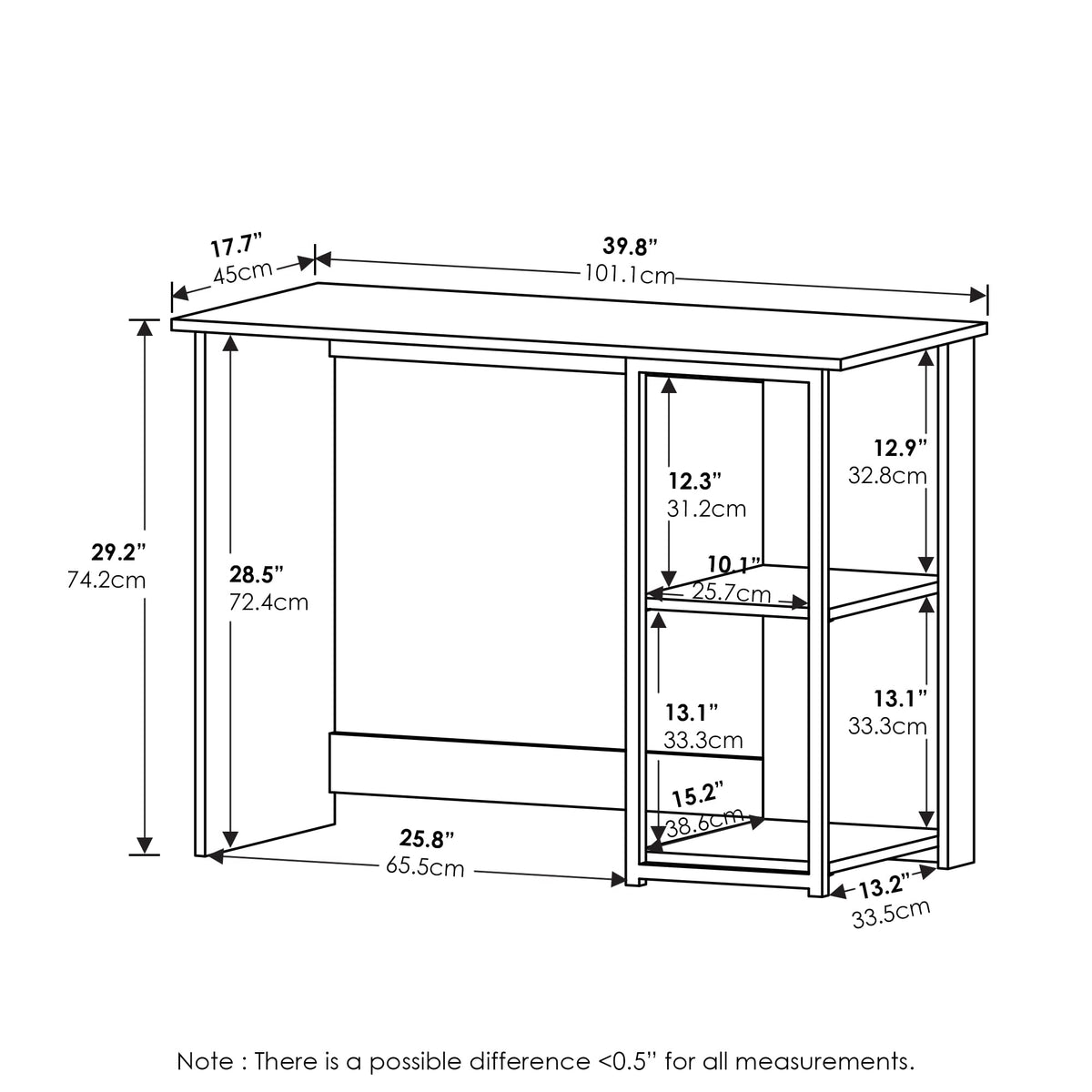 Furinno Camnus Modern Living Computer Desk 40 Inch, Solid White/White