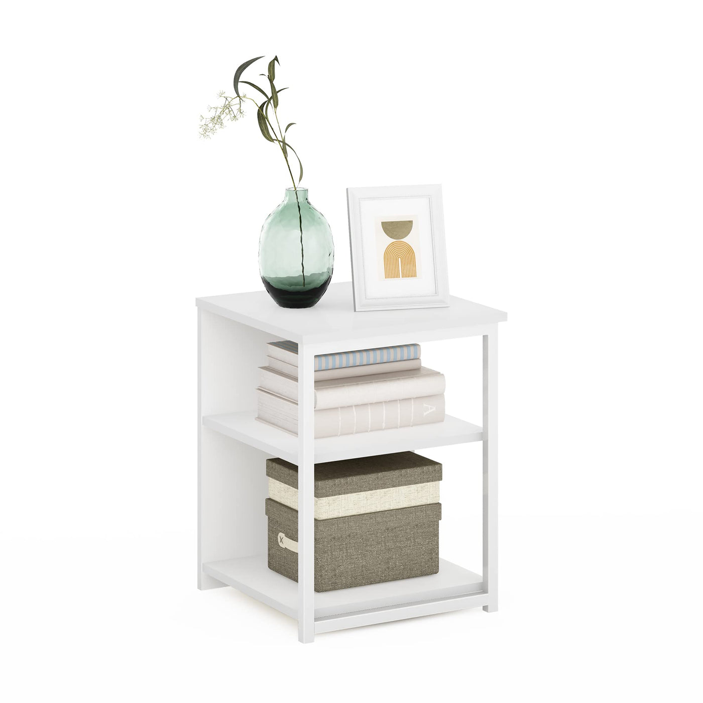 Furinno Camnus Modern Living End Sofa Side Table/Nightstand with Metal Frame Support, Solid White/White