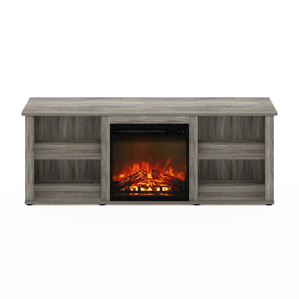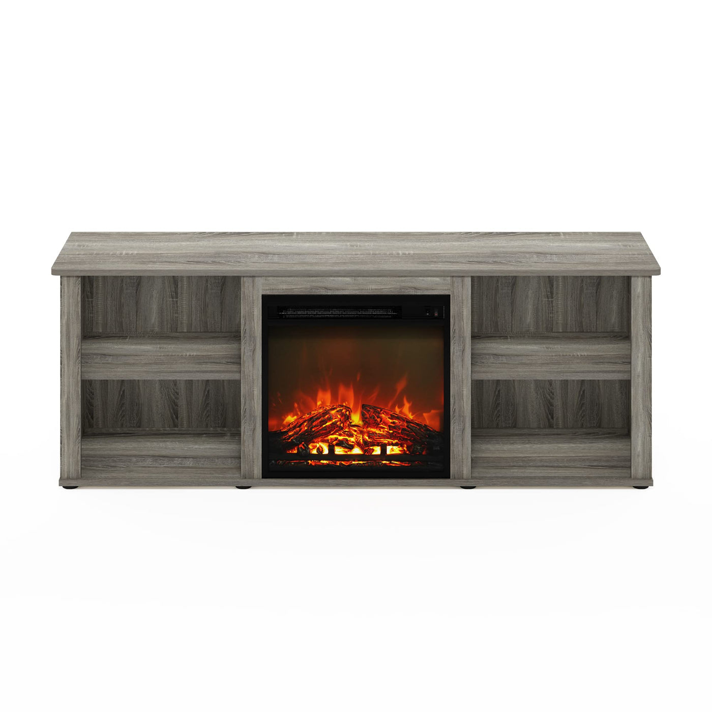 Furinno Classic 60 Inch Tv Stand With Fireplace, French Oak Grey