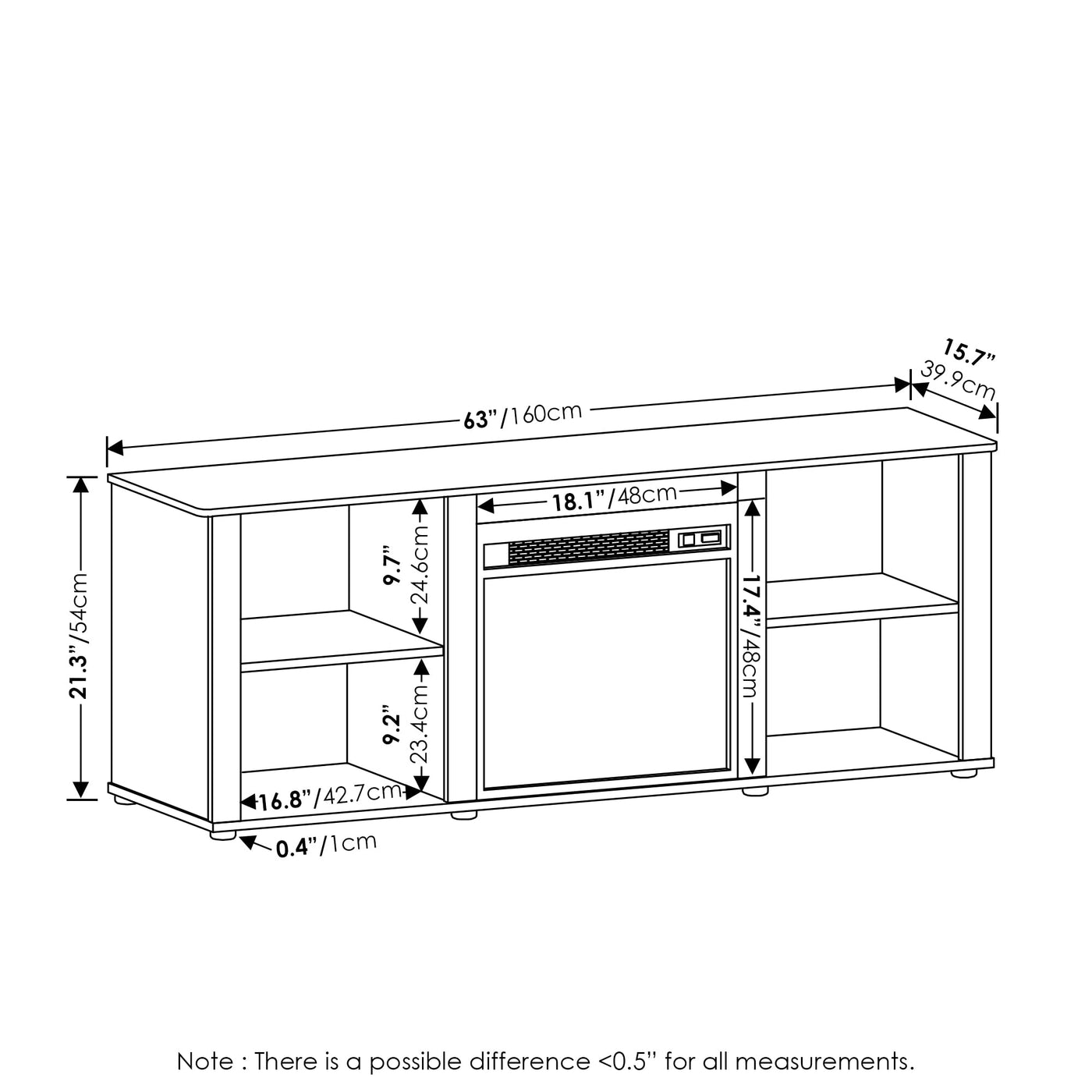 Liven up your living room with the modern looking TV Stand that showcases elegance and style. This TV stand includes an electric fireplace for creating a relaxing ambiance and heating up your living area. Support TV up to 60 inches while elevating viewing height for a better TV watching experience. The TV Stand comes with shelves for TV accessories and decor displays. Shelves are also designed with cable management features to keep wires and cables organized. made of CARB Grade composite wood and manufactured in Malaysia. Assembly is easy with the provided hardware and step by step clear assembly instructions. Care instructions: wipe clean with a clean damped cloth. Avoid using harsh chemicals. Pictures are for illustration purposes. All decor items are not included in this offer.