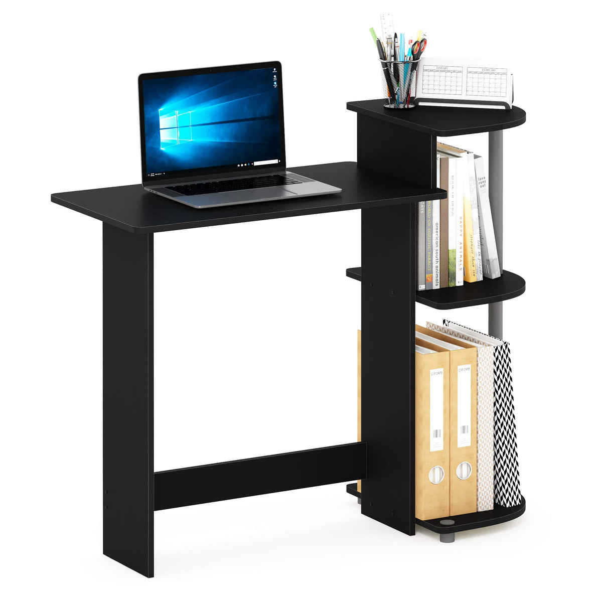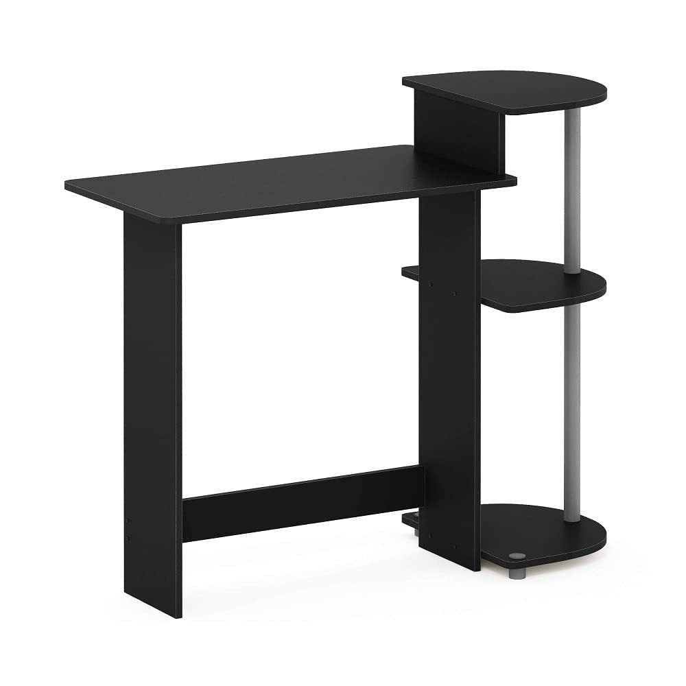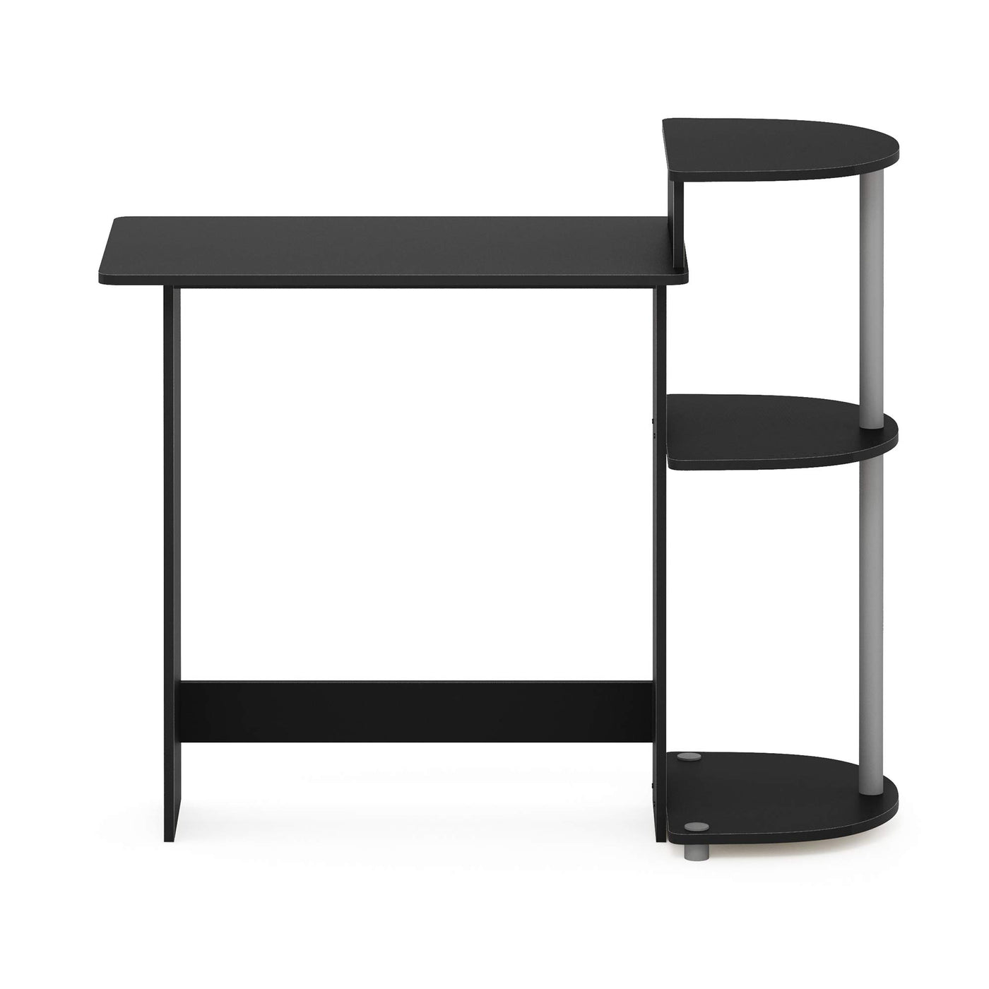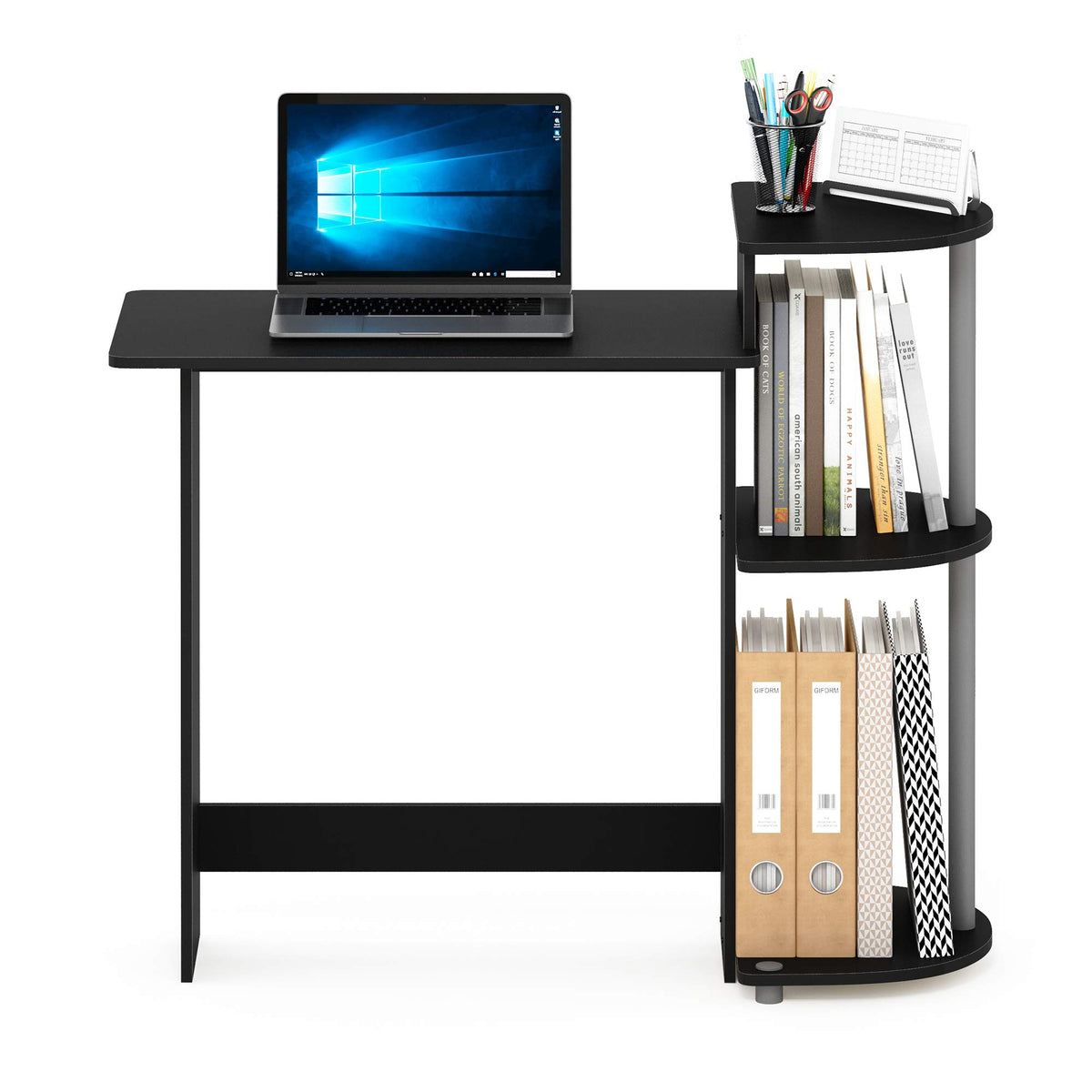 Furinno Compact Computer Desk with Shelves, Round Side, Black/Grey