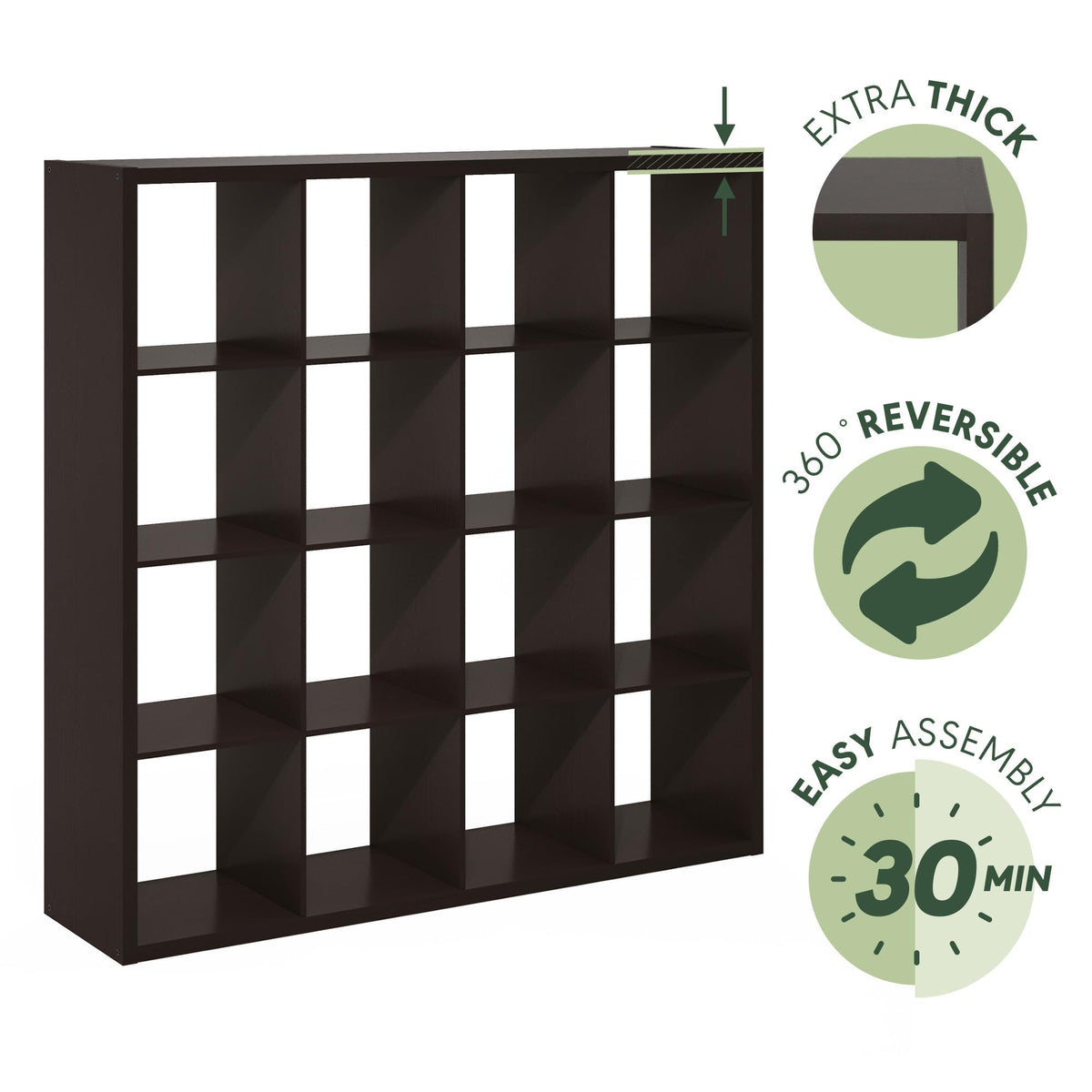 Furinno Cubicle Open Back Decorative Cube Storage Organizer, 16-Cube, Dark Oak