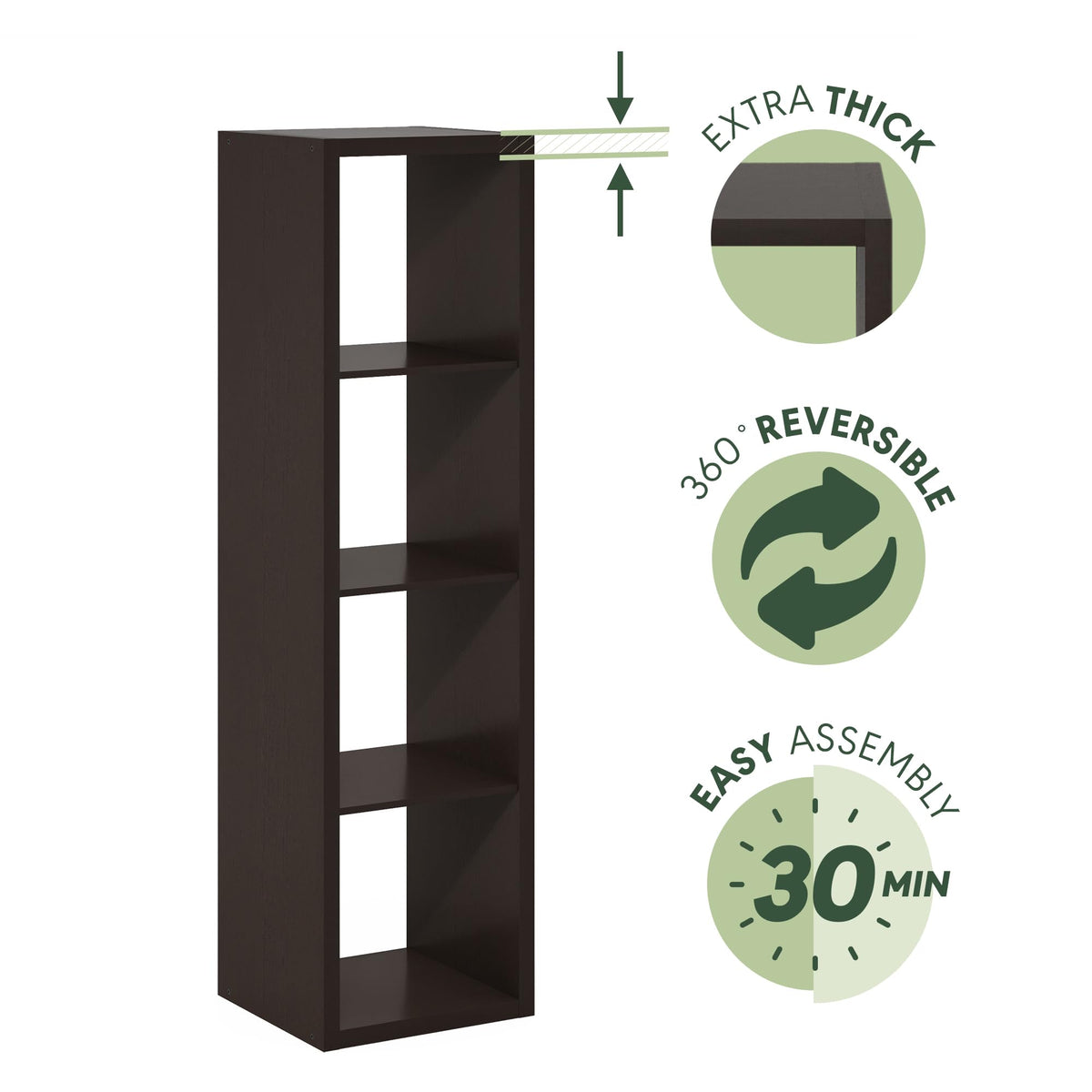 Furinno Cubicle Open Back Decorative Verticle Cube Storage Organizer, 4-Cube, Dark Oak