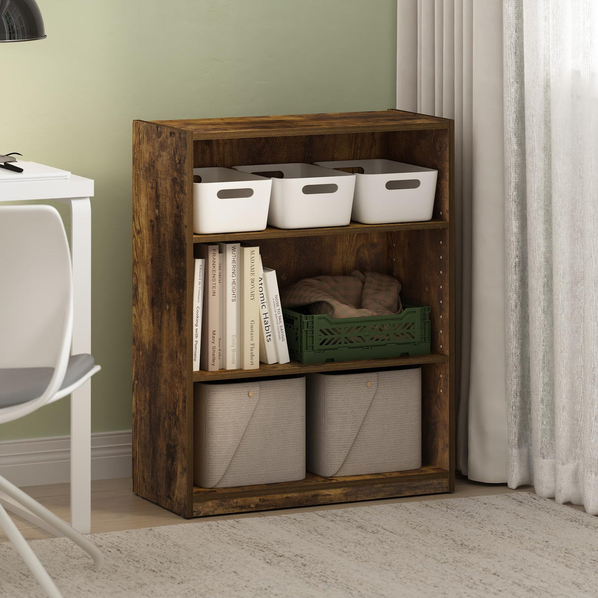 Furinno Gehry 3-Tier Bookcase, Bookshelf with Adjustable Shelves, Amber Pine