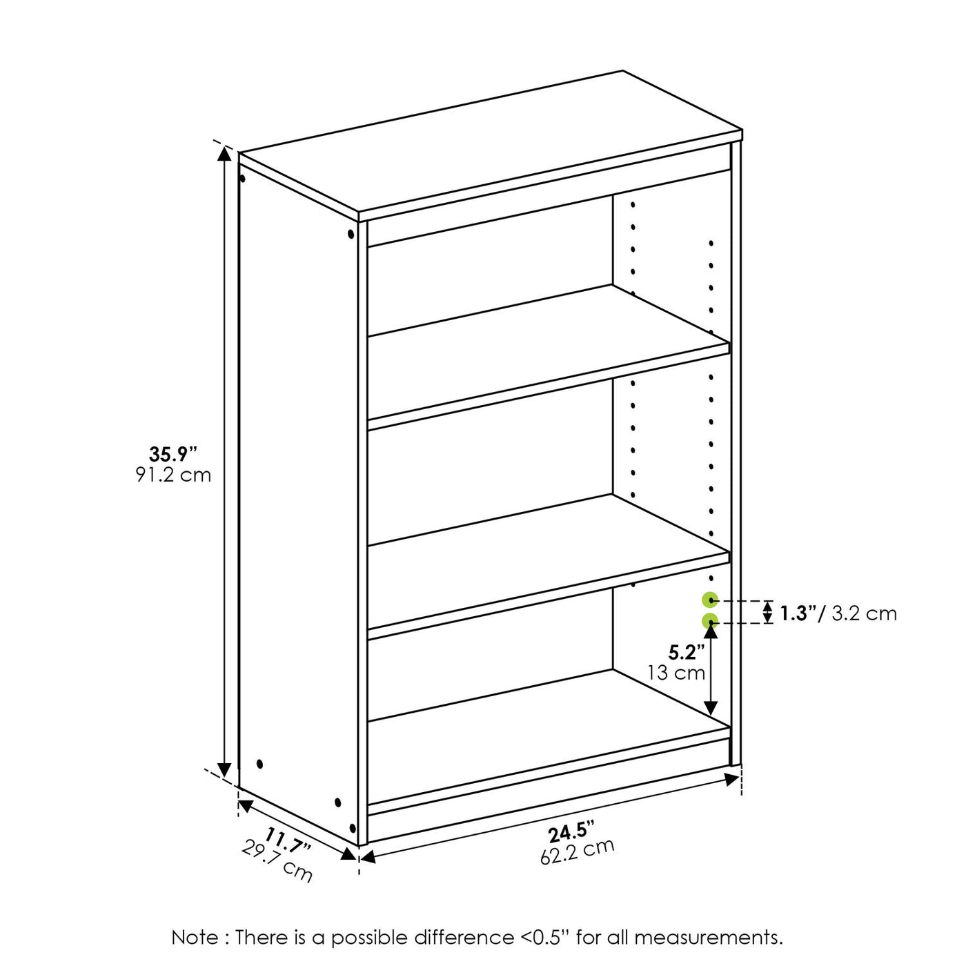 A Sleek And Sturdy 3-Shelf Bookcase With Multiple Color Options That Adds Functional And Stylish Look To Any Room Setting. Made From Quality Particle Board, Gruen Has A Closed-Back Design With Adjustable Shelves That Holds Up To 15 Lbs Per Shelf And 25 Lbs For Bottom Shelf. Assembly Is Easy With Clear Step By Step Assembly Instructions And Hardware Pack Provided. This Attractive Bookshelf Provides Ample Storage Space And Fits Well In Most Rooms. Care Instructions: Wipe Clean With Clean Damped Cloth. Avoid Using Harsh Chemicals. Pictures Are For Illustration Purpose. All Decor Items Are Not Included In This Offer.