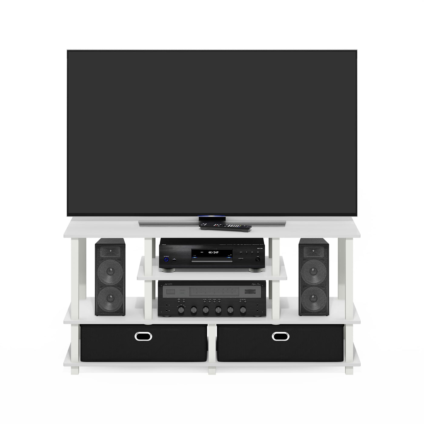 Furinno Jaya Large Tv Stand For Up To 55-Inch Tv With Storage Bin, White/White/Black