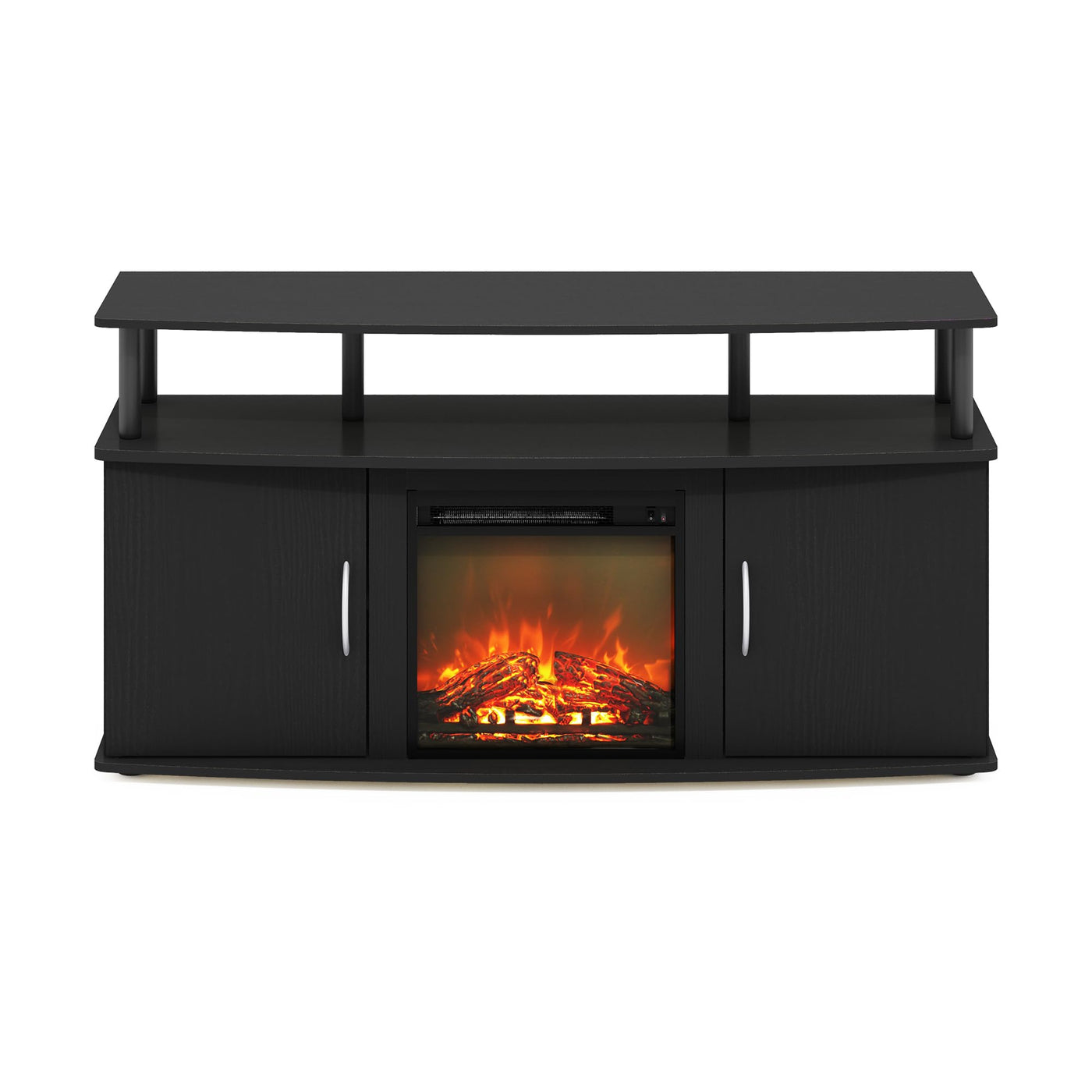 Furinno Jensen Living Room Fireplace Tv Entertainment Center With Doors Storage Cabinet For Tv Up To 55 Inch, Americano/Black