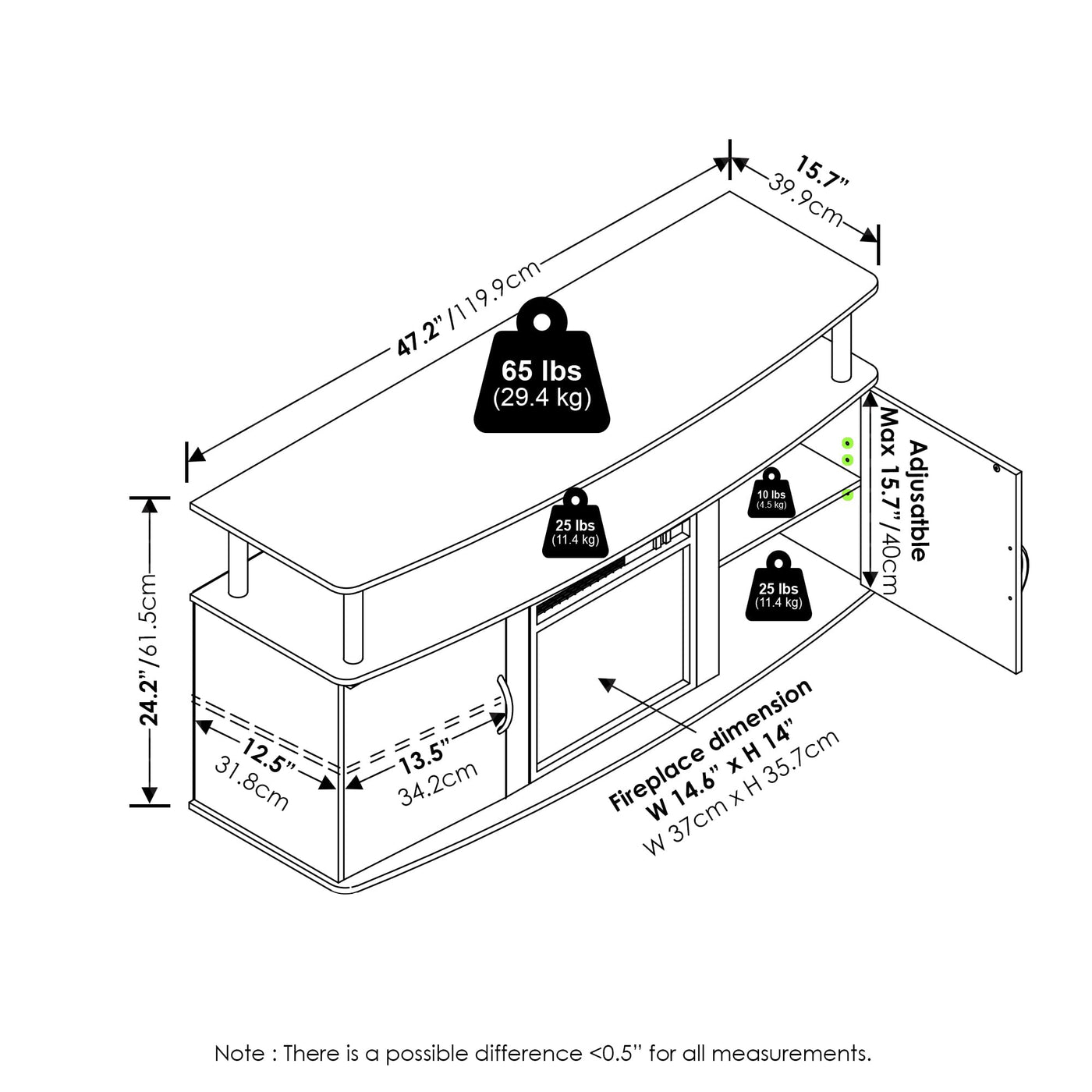 The Furinno Jensen Living Room Fireplace Entertainment Center is an elegant and multifunctional piece, ideal for supporting TVs up to 55 inches. This unit features a built-in electric fireplace, creating a cozy and inviting atmosphere in your living space. Additionally, it boasts spacious cabinets with doors, offering discreet storage solutions for your media accessories, while its sophisticated design seamlessly blends with various home décor styles. The Fireplace Entertainment Center is made of CARB-grade composite wood tested for durability and sturdiness. Assembly is easy with provided step-by-step instructions. Care instructions: wipe clean with a clean damped cloth. Avoid using harsh chemicals. Pictures are for illustration purposes. All decor items are not included in this offer. The product is entitled to a 1-year warranty against manufacturer defects. Fits Space,Fits Budget.