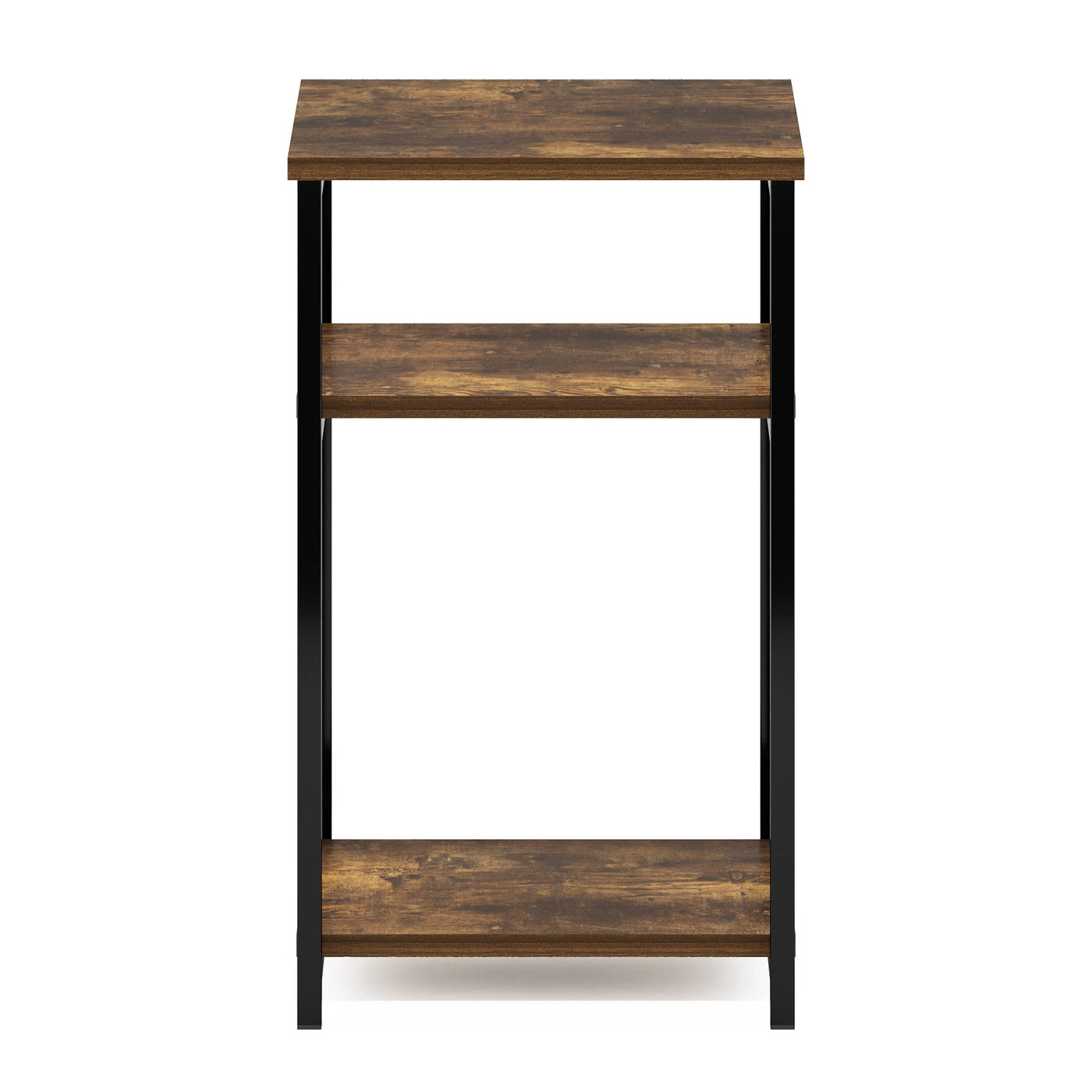 Furinno Just 3-Tier Metal Frame End Table with Storage Shelves, 1-Pack, Amber Pine