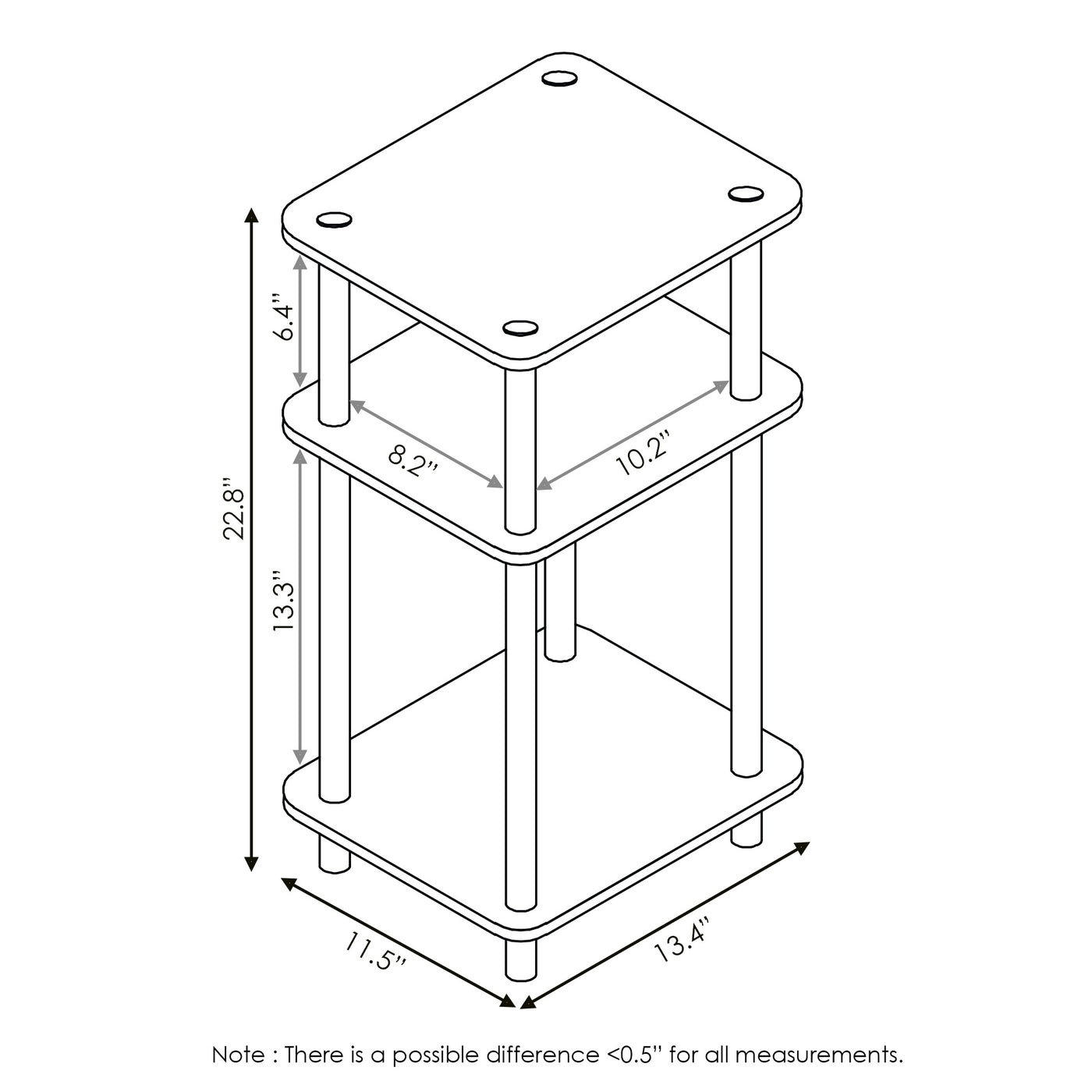 Furinno Just 3-Tier Turn-N-Tube End Table / Side Table / Night Stand / Bedside Table with Plastic Poles, 2-Pack, Americano/Black