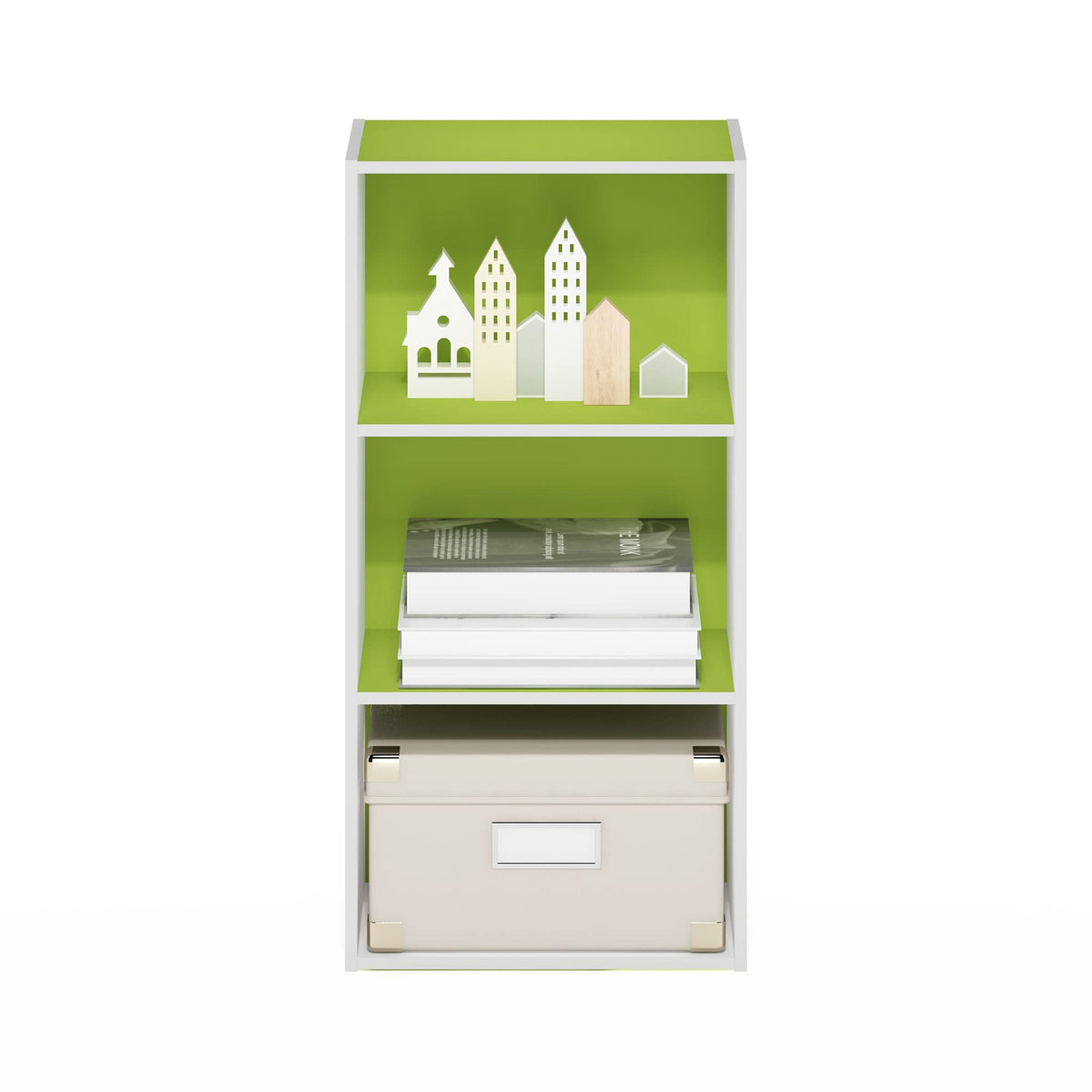 Furinno Luder 3-Tier Open Shelf Bookcase, Green/White