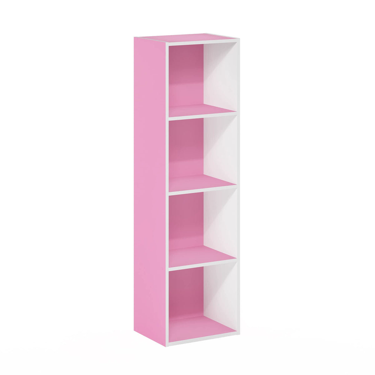 Furinno Luder Bookcase / Book / Storage, 4-Tier Cube, Pink/White