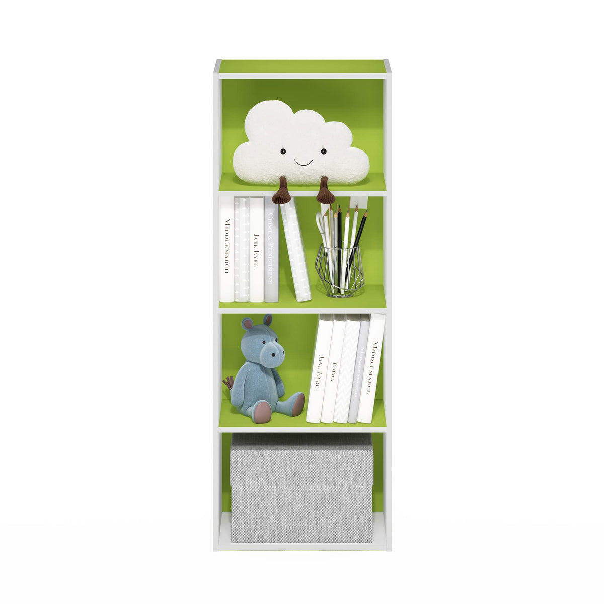 Furinno Luder Bookcase / Book / Storage, 4-Tier, Green/White