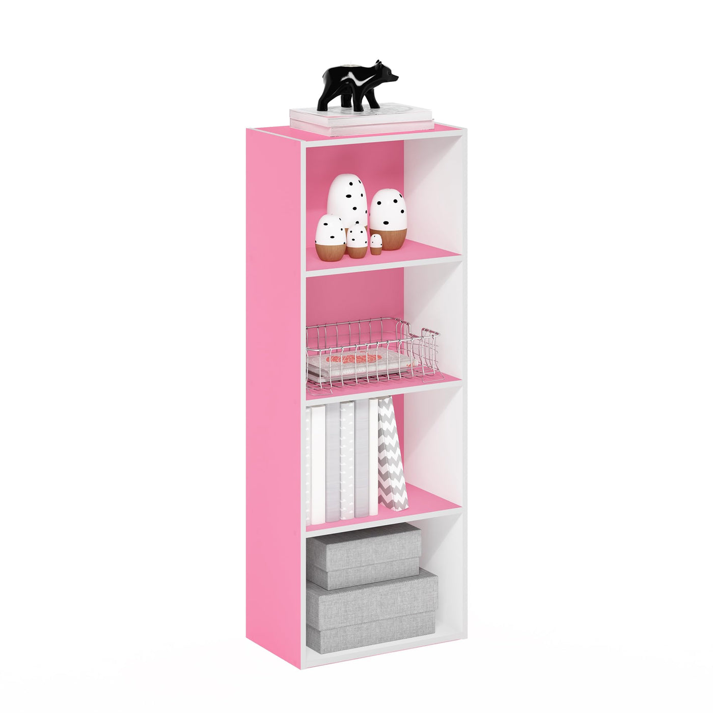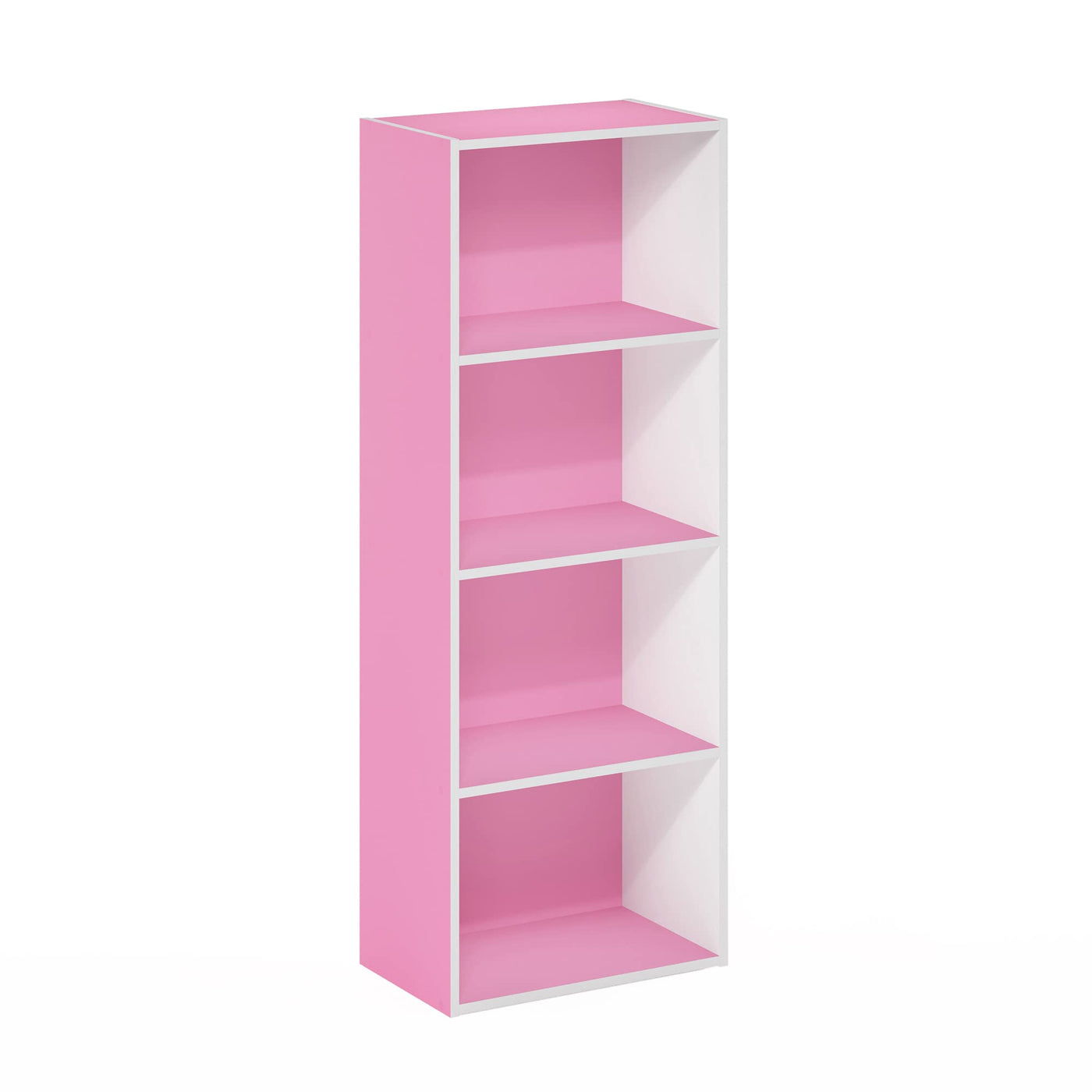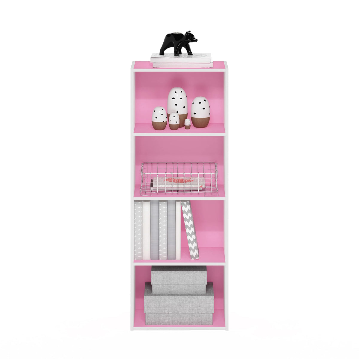 Furinno Luder Bookcase / Book / Storage, 4-Tier, Pink/White