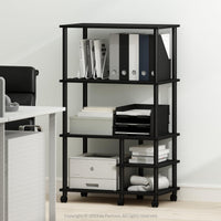 Furinno Turn-N-Tube 4-Tier Toolless Multipurpose Printer Stand Display Storage Shelf With Wheels, Americano/Black