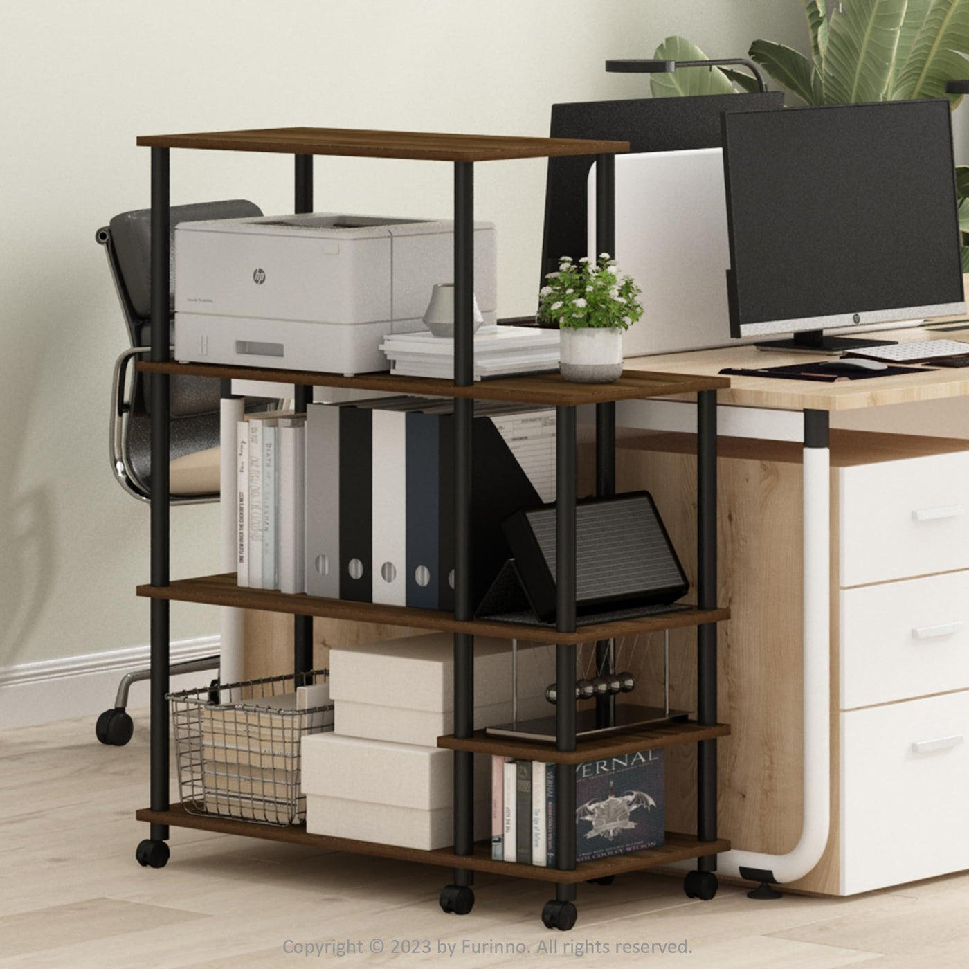 Furinno Turn-N-Tube 4-Tier Wide Toolless Multipurpose Printer Stand Display Storage Shelf With Wheels, Columbia Walnut/Black