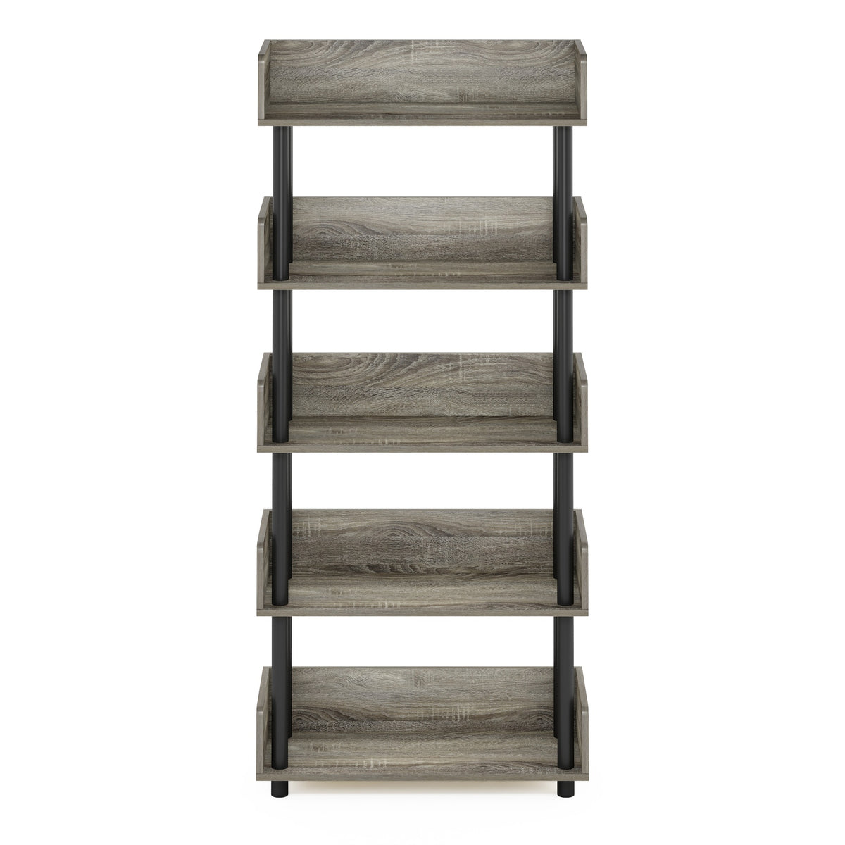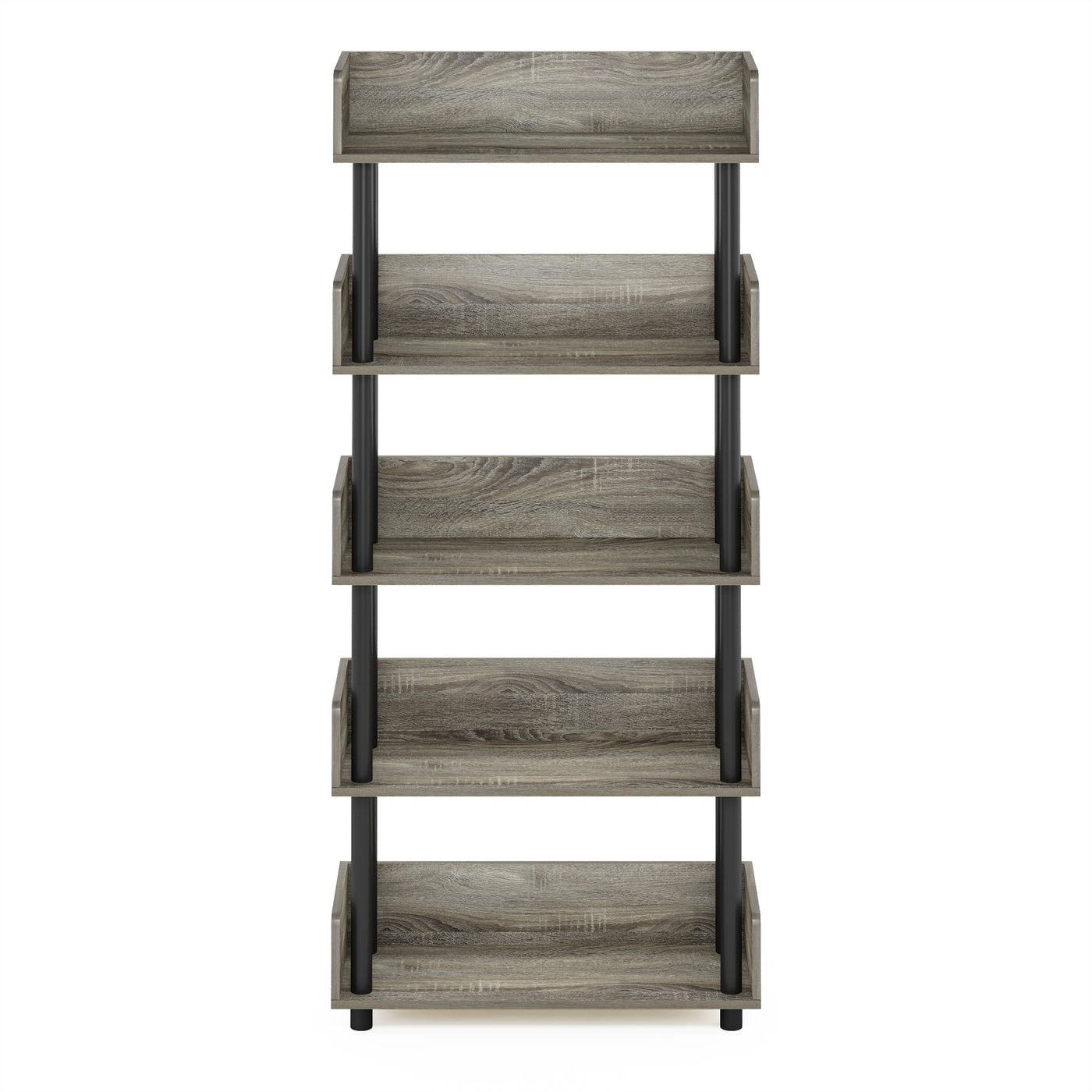 Furinno Turn-N-Tube 5-Tier Toolless Display Rack, French Oak/Black