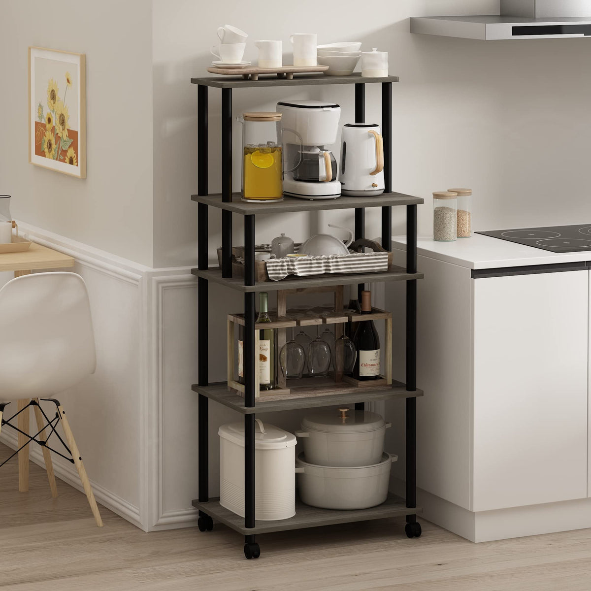 Furinno Turn-N-Tube 5-Tier Toolless Kitchen Storage Cart with Lockable Wheels, French Oak Grey/Black