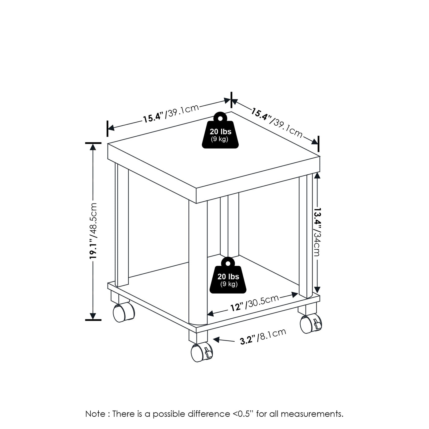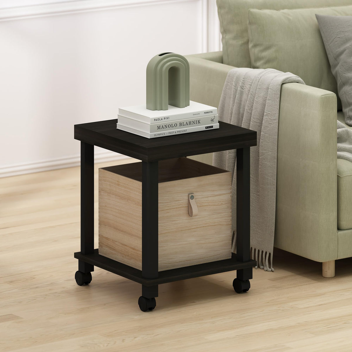 Furinno Turn-N-Tube Classic 2-Tier End Table, Side Table with Casters, Espresso/Black