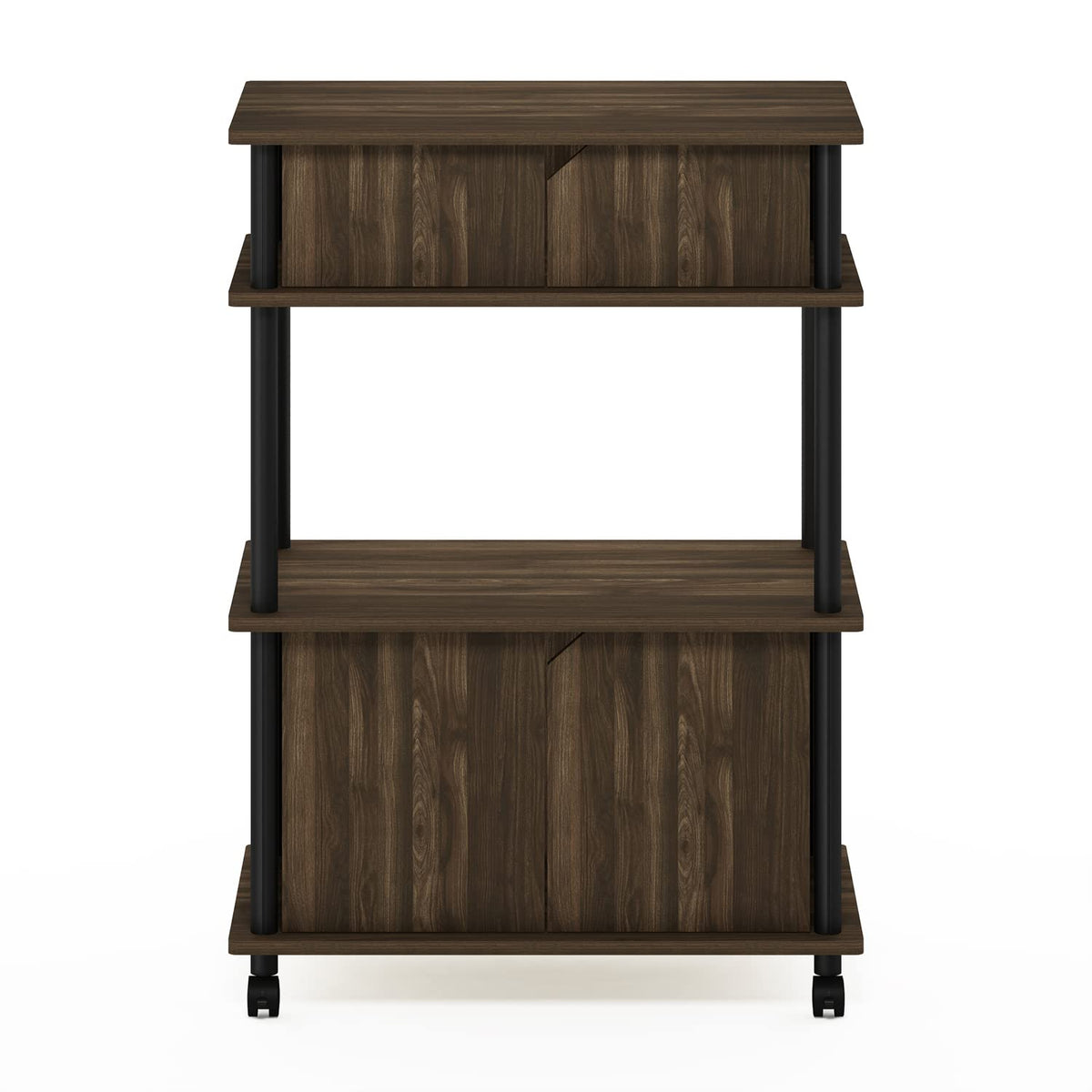 Furinno Turn-N-Tube Kitchen Storage Cart with Cabinet and Lockable Wheels, Columbia Walnut/Black