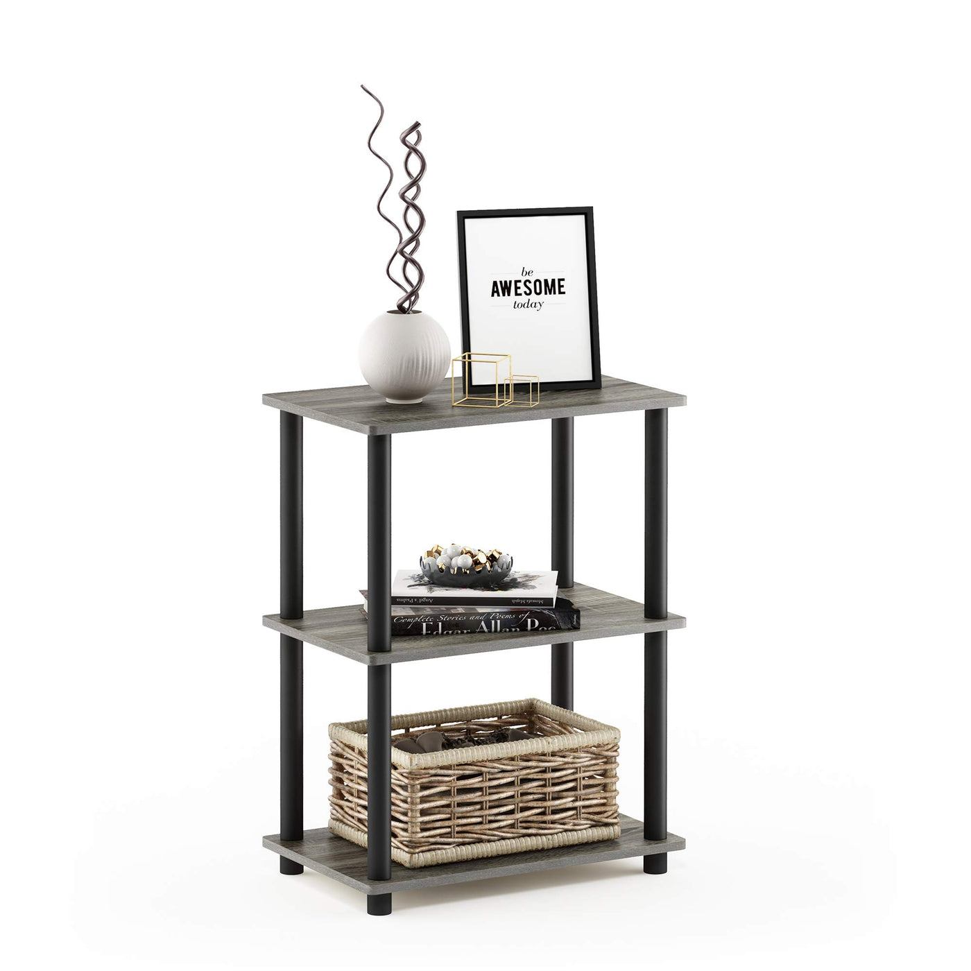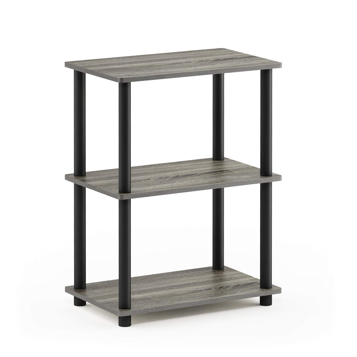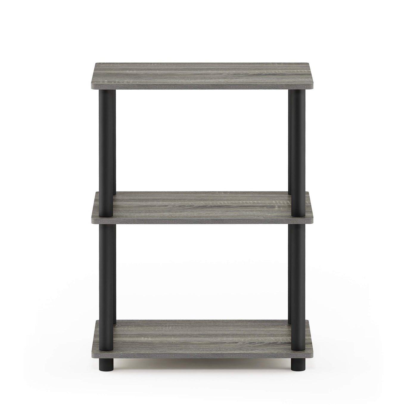 Furinno Turn-N-Tube No Tool 3-Tier Storage Shelf, Narrow, French Oak Grey/Black