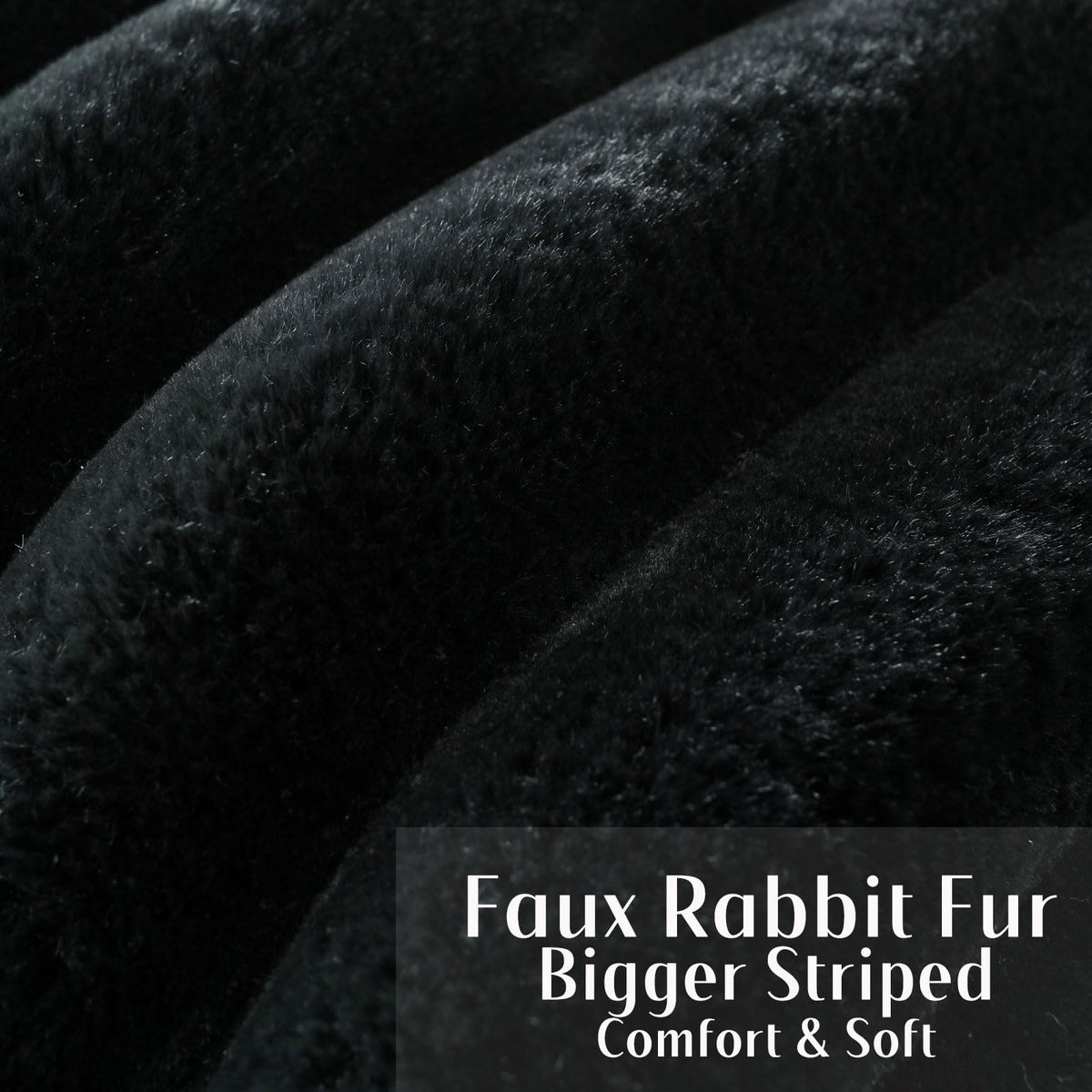 Futei Black Decorative Throw Pillow Covers 18X18 Inch Set Of 2, Square Soft Faux Rabbit Fur Big Striped Cushion Cover,Home Decor