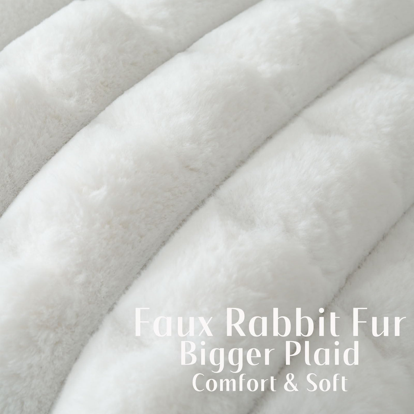 Futei Cream White Decorative Throw Pillow Covers 20X20 Inch Set Of 2, Square Soft Faux Rabbit Fur Big Plaid Cushion Cover,Home D