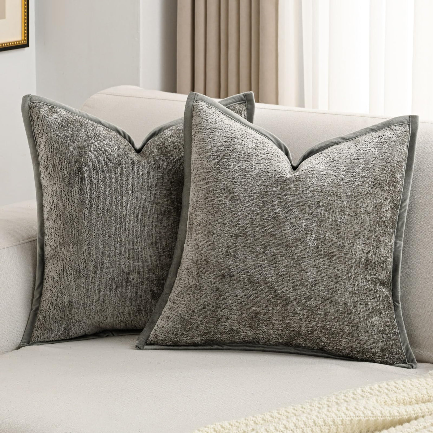 Futei Grey Chenille Throw Pillow Covers 16X16 Inch Set Of 2,Soft Velvet Cushion Case,Home Decor For Couch Bed Living Room