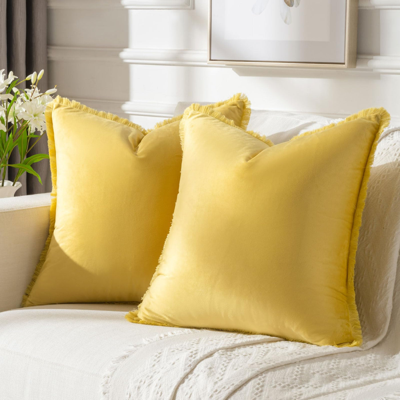 Q: What styles or decor themes do these pillow covers complement?A: These lemon yellow velvet pillow covers complement various styles, including boho and modern decor, making them perfect for adding a pop of color to your living room, bedroom, or office.