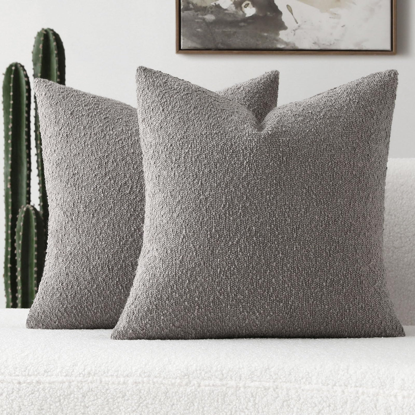 Futei Pack Of 2 Light Grey Boucle Accent Decorative Throw Pillow Covers,20X20 Inch Soft Solid Textured Cushion Case,Home Decor F