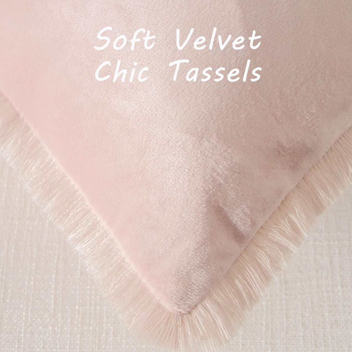 Futei Pink Boho Throw Pillow Covers With Tassels 24X24 Inch Set Of 2,Soft Velvet Decorative Euro Pillow Shams,Home Decor For Cou