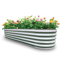 Gardmax Galvanized Raised Garden Bed, Lightweight Planter Boxes Outdoor With Easy Assembly, Large Garden Bed For Vegetables, Fruits, Flower Silver 8Ft Garden Raised Bed Galvanized Planter Outdoor Box Beds Planters Metal Gardening Flower Boxes Planting Plant Vegetable Large Pots Plants Kit Clearance Tower Steel Herb Pot Tub Vertical Supplies Grow Growing Round Elevated Potato Trough Accessories Containers Ground Oval System Vegetables Above Container Fence Storage Long Patio Rectangular Stock Tomato Deck Indoor Small Strawberry Tank Wood Essentials Fabric Properly Size For Your Garden: The Size Of This Gardmax Raised Bed Is 8X2X1.4(Ft)=94.5X23.6X16.5(Inch). The Gardmax Galvanized Raised Garden Bed Can Meet Your Outdoor Planting Needs, Provide Ample Growing Space To Raise Vegetables, Herbs, Fruits, Flowers And Small Trees Anywhere In Your Garden Durable Galvanized Material: Gardmax Outdoor Raised Garden Beds Are Made From 0.8Mm Heavy-Duty Galvanized Material, Ensuring Exceptional Longevity And Durability. It Is More Resistant To High Temperatures And Freezes, Making It Very Suitable For Outdoor Use. And This Metal Will Survive The Elements For Decades, But When You'Re Ready To Replace It, The Metal Is Entirely Recyclable. (Moreover, The Middle Support Strip Provided Exceptional Strength To Our Lightweight Galvanized Raised Garden Bed.) Used In Any Space: With Gardmax Raised Garden Bed, You Can Not Only Grow Potatoes, Beans, Sweet Potatoes, Broccoli, Flowers, Herbs And Other Plants In Your Garden, Yard, Patio And Greenhouse, You Also Can Grow In A Small Balcony. Our Gardmax Raised Garden Bed Is Perfect For All Skill Levels, It Is The Perfect Addition To Your Outdoor Space Open Bottom Design: Gardmax Galvanized Planter Raised Beds Are Designed With An Open Bottom, Which Is Good For Drainage To Protect Plants, Plant Roots Won'T Be Sick From Excessive Water. It Also Keep Weeds Away From Soil And Keep Out Small Pets Like Chicken, Puppies, Rabbits To Protect Your Plants Easy To Assemble: Set Up Your Garden Bed, In Just Minutes And Easy To Put It Together, It Can Be Reused For Many Years. Our Gardmax Raised Garden Beds Feature An Oval Design With No Sharp Corners To Cover The Edges Providing Protection From Injury. Get Started On Your Garden Right Away And Enjoy Fresh, Healthy Produce In No Time