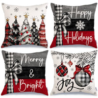 Geeory Christmas Throw Pillow Covers 18 X 18 Inch Set Of 4, Xmas Trees Merry And Bright Happy Holidays Farmhouse Decorative Cush