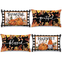 Geeory Fall Decorative Throw Pillow Covers 12 X 20 Inch Set Of 4, Thankful Grateful Blessed Harvest Pumpkin Gnome Thanksgiving F