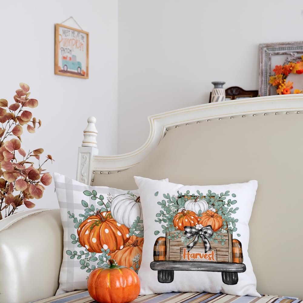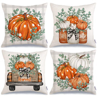Geeory Fall Pumpkins Throw Pillow Covers 20X20 Inch Set Of 4, Eucalyptus Truck Mason Jars Autumn Decorative Seasonal Farmhouse D