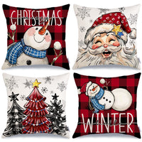 Geeory Merry Christmas Pillow Covers 18X18 Inch Set Of 4, Xmas Decoration Santa Snowmen Trees Hello Winter Snowflake Holiday Far