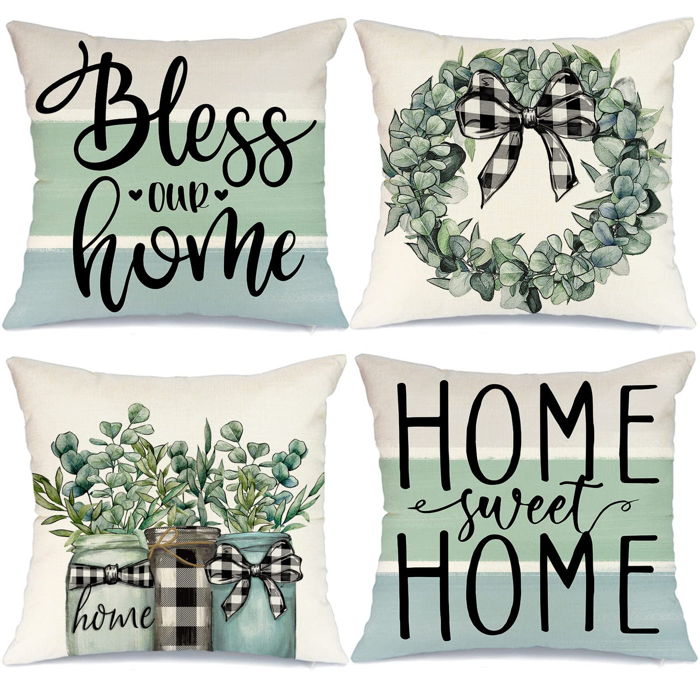 Geeory Pillow Covers 16X16 Inch Set Of 4 Home Sweet Home Eucalyptus Wreath Bless Our Home Pillows Decorative Throw Pillows Buffa