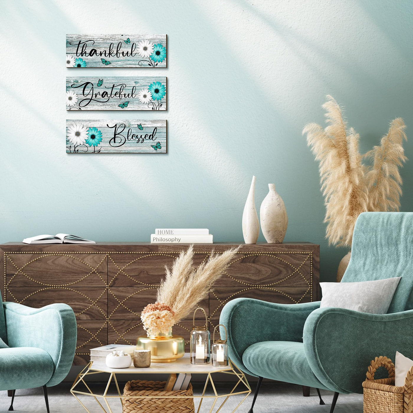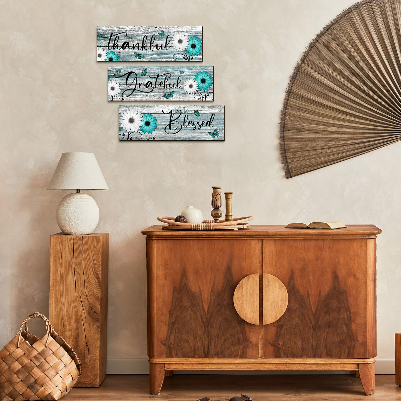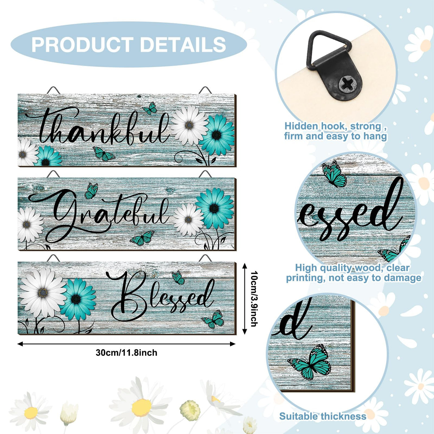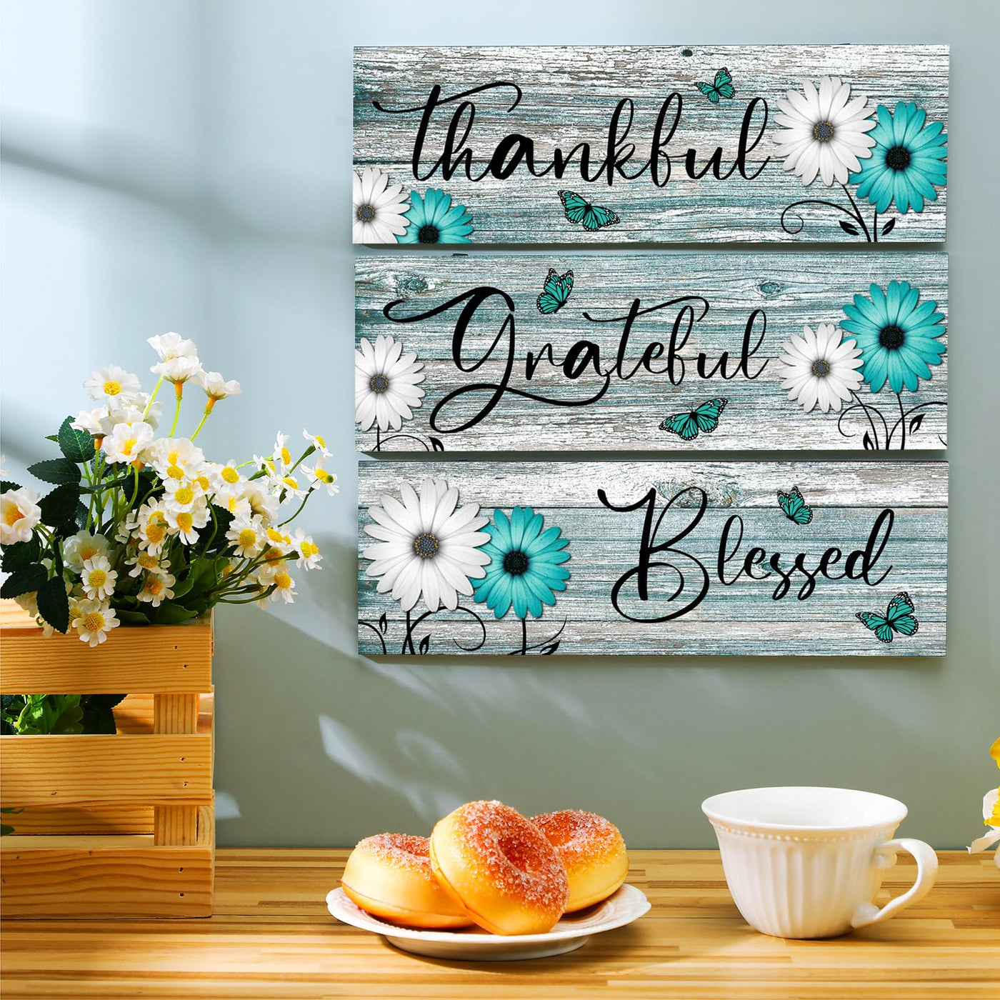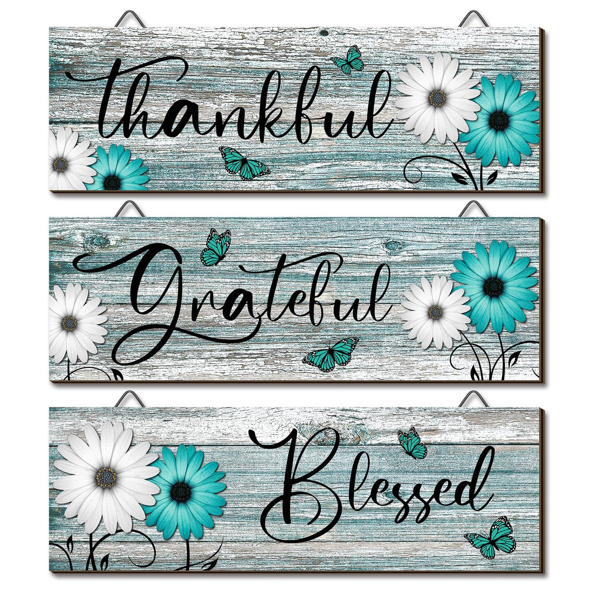 Geetery 3 Pcs Thankful Grateful Blessed Wooden Signs Rustic Daisy Wood Wall Decor Inspirational Wall Art Signs Rustic Wooden Han