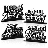 Q: What inspirational quotes are included with the Geetery table decor?A: The set includes four inspirational quotes: 'I still remember the days I prayed for the things I have now', 'With God all things are possible', 'Be still and know that I am good', and more, to help maintain a positive mindset.