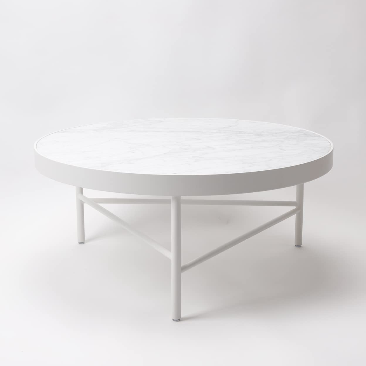 Blake CoffeeandTableMaterial: Carrara white marble top Mattandwhite iron powder coated baseDimensions: Diameter 80cm x H 35cmand